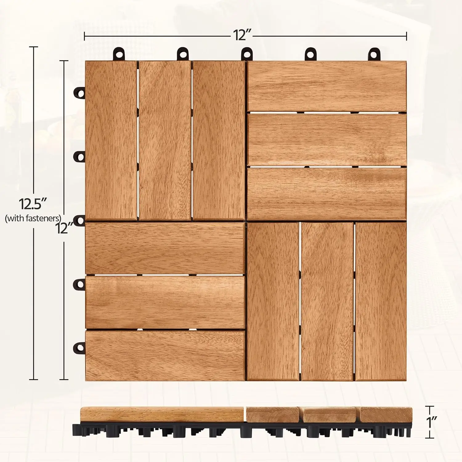 108pcs Hardwood Interlocking Patio Deck Tiles Acacia Waterproof Wood Flooring Tiles for Patio Garden Poolside, 12'' x12'' Indoor Outdoor Use All Weather