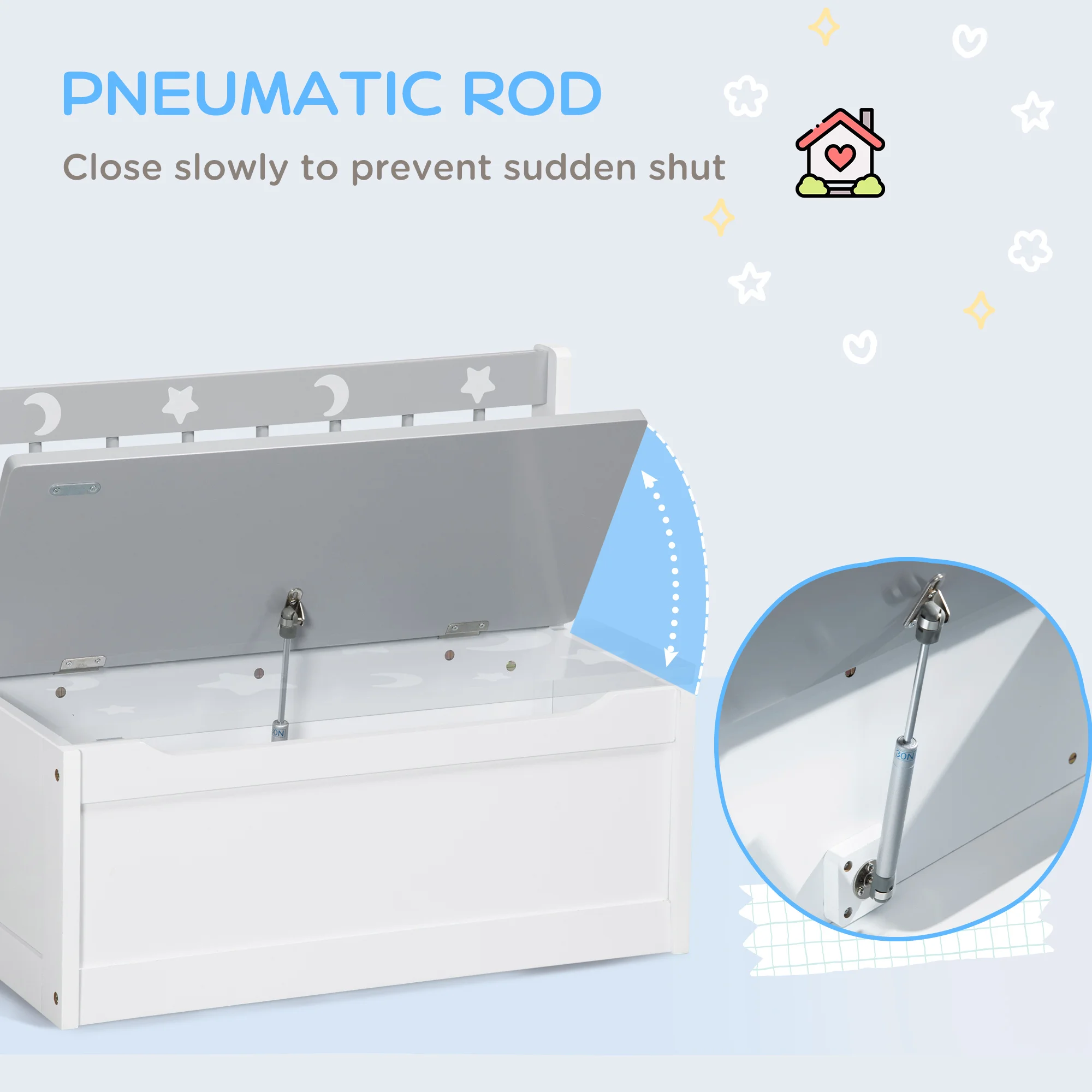 Safety Features: The wooden toy chest comes with a stay bar that holds the lid open for safety. The top panel will close slowly to avoid sudden injury while your children are grabbing things inside.