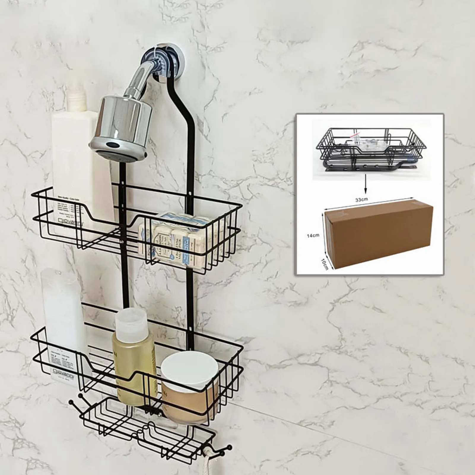 Easy Installation & No Drilling Required: No need to damage your walls with drilling - this large capacity shower rack storage can be easily hung over your shower head or any suitable hook, providing convenient organization without the hassle.