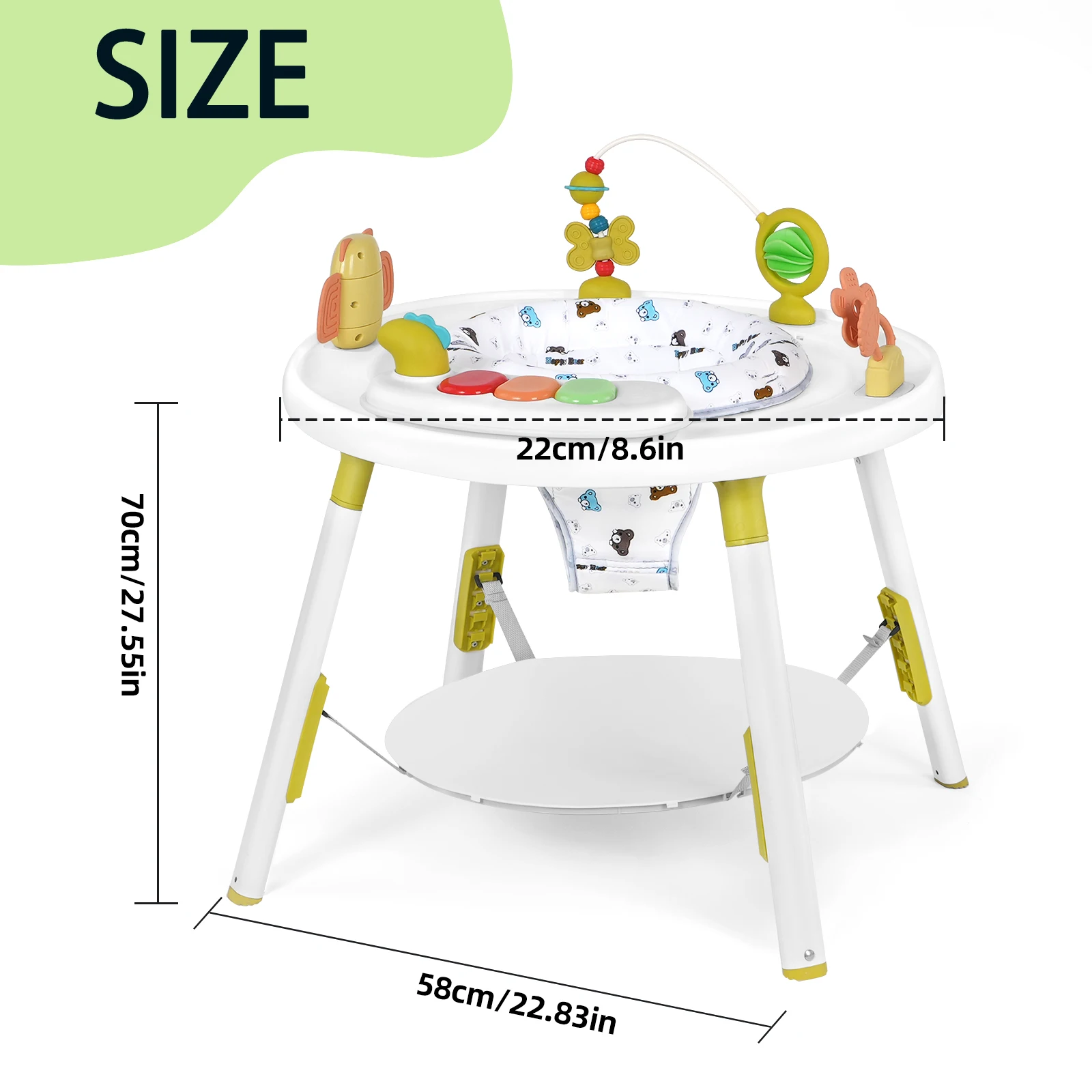 · Adjustable for Growing Babies: Features multiple height settings to fit your baby’s changing size. The 360° rotating seat lets little ones easily reach all toys while strengthening muscles and improving balance—all while having fun.