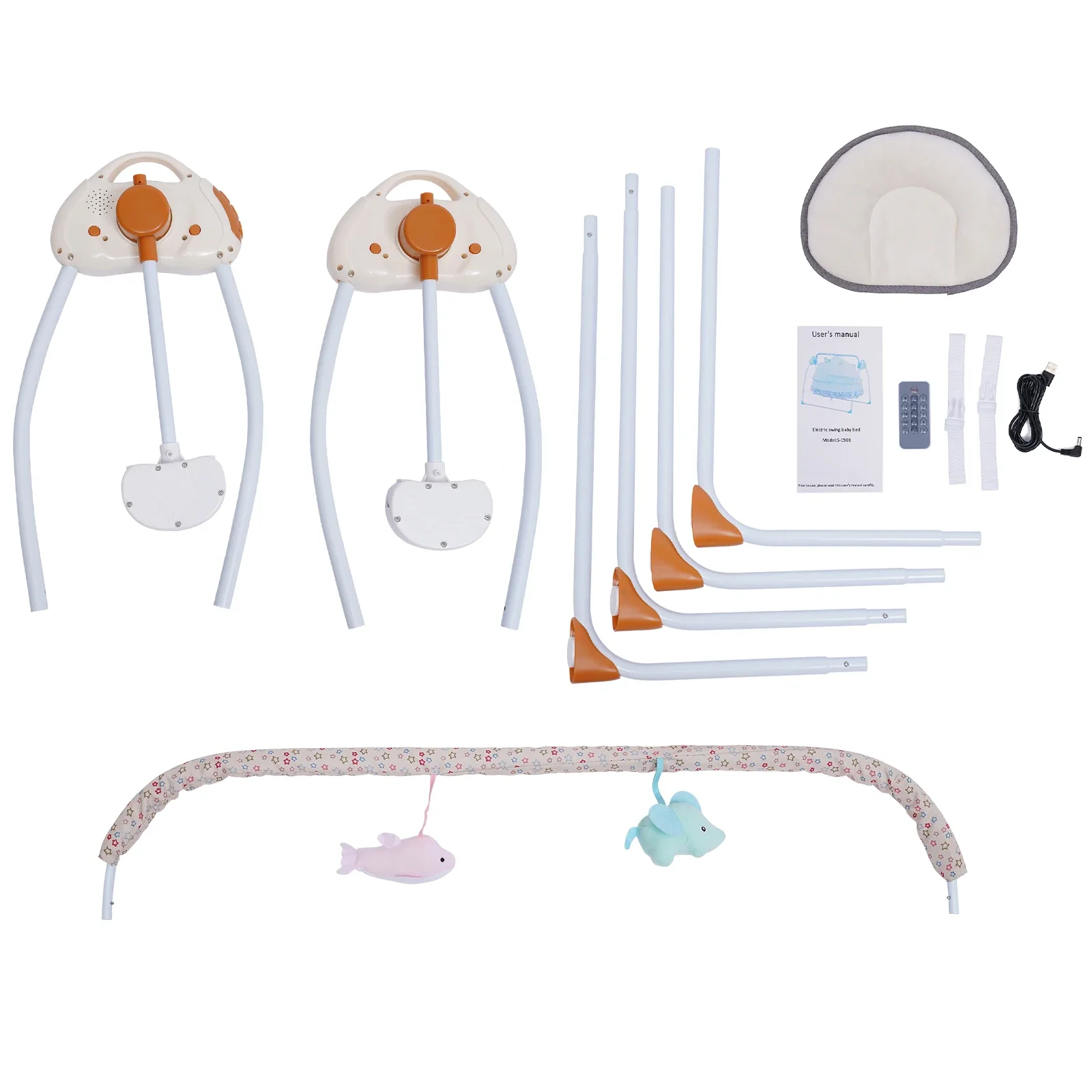 Built-In 12 Music + Mp3 Play + Can Insert U Disk(Not Disk) + 1 Remote Controller + 1 Mat + 1 Pillow + 1 Mosquito Nets