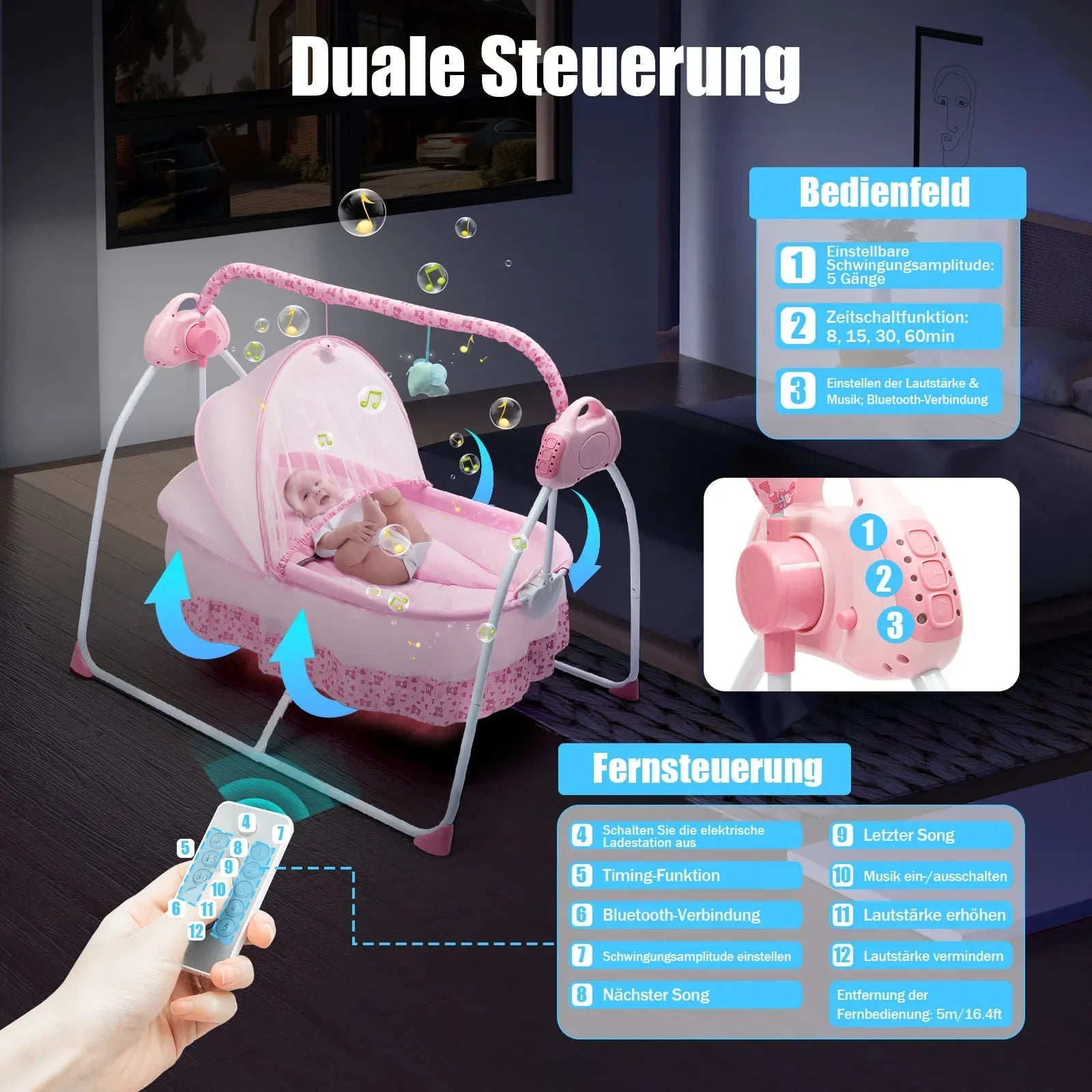 Automatic Rocking Chair, Five Gears Adjustable, Start Button, Each Click Is 1, 2, 3, 4 And 5 (8 Minutes - 15 Minutes - 30 Minutes - 60 Minutes - Music File).