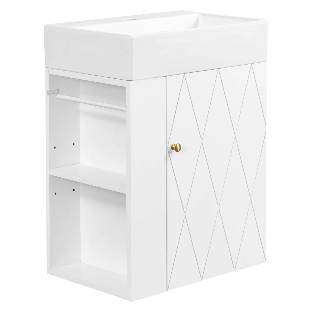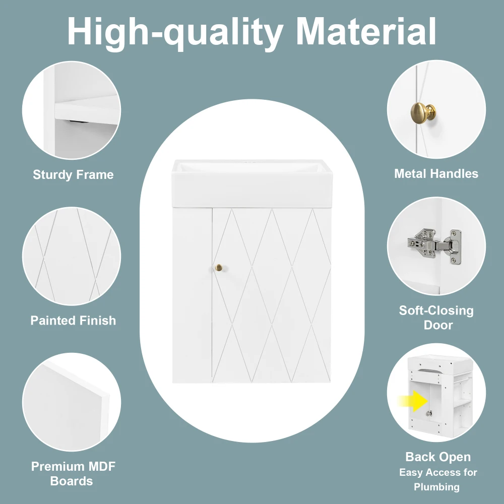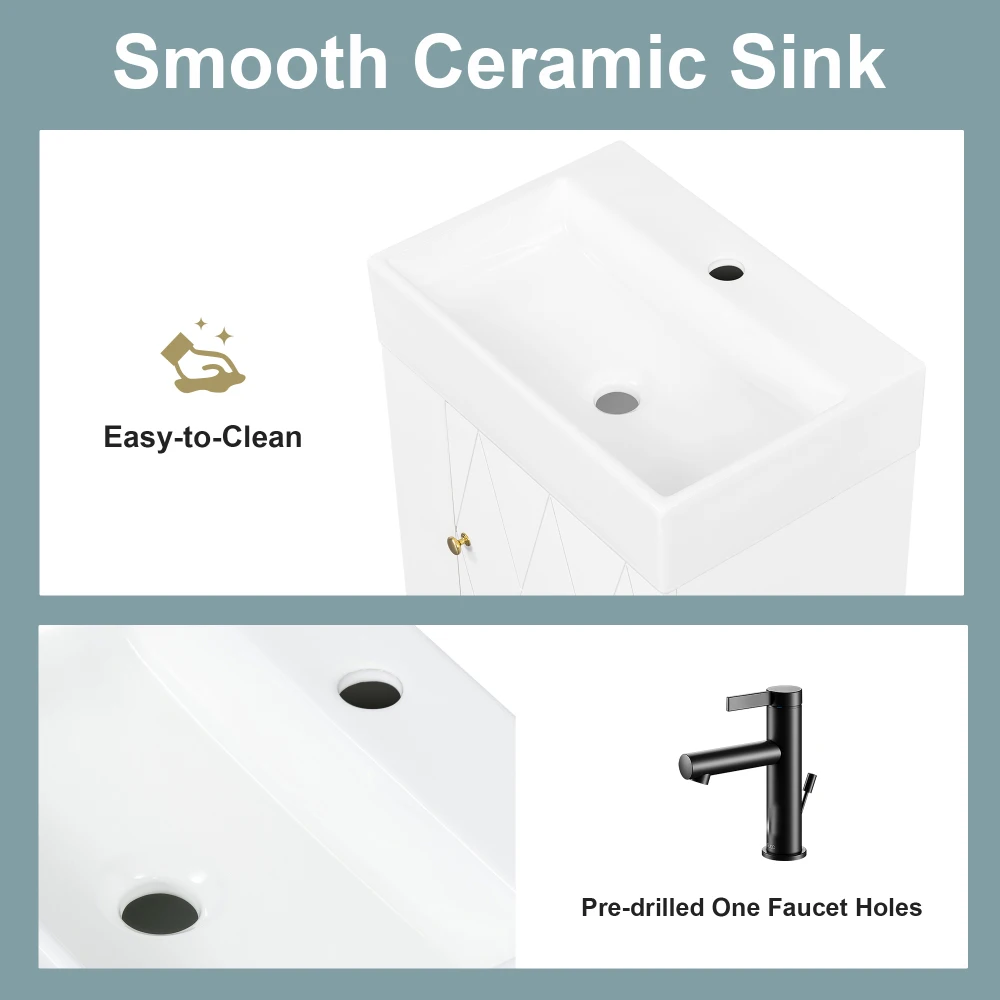 Compact 20-Inch Size – Designed for small bathrooms, apartments, and powder rooms, this vanity maximizes functionality without taking up extra floor space.Durable MDF Construction – Built with high-quality MDF material, the cabinet offers long-lasting sturdiness and reliable everyday use.