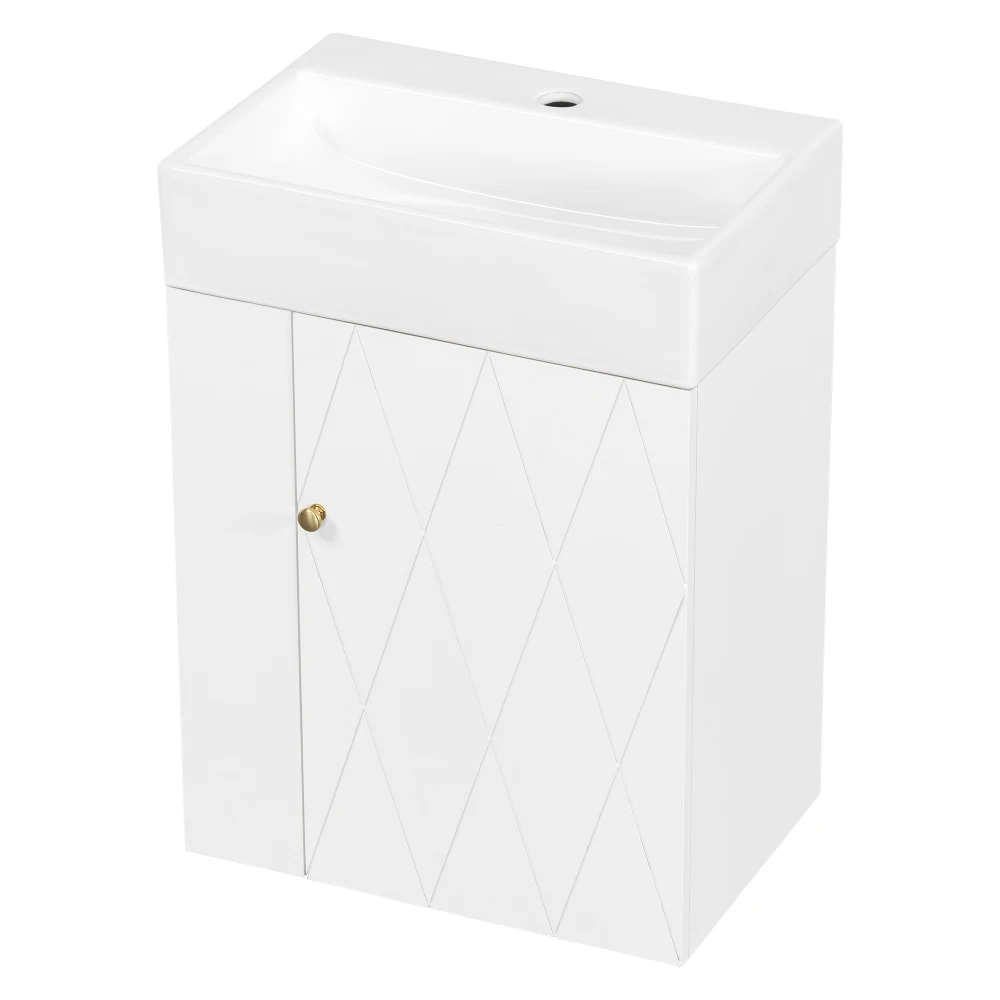 Elegant Diamond Door Design – The cabinet door features a stylish diamond-shaped groove pattern, adding a refined decorative touch to your bathroom décor.