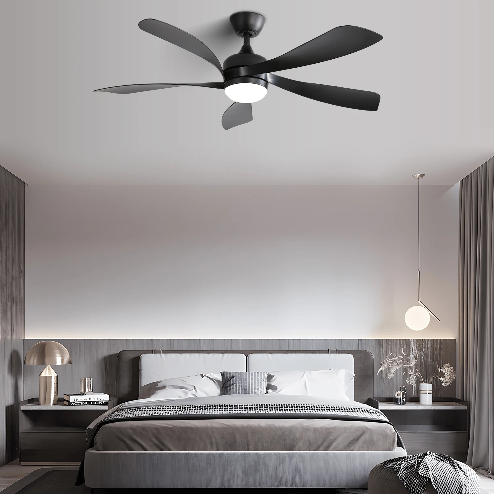 Ceiling Fan With Remote Control : This ceiling fan has three control methods. The smart modern ceiling fan adopts the latest upgraded multifunctional remote control. The remote control has functions such as natural wind and one-button reversal, and separates the light and fan switches. Remote control built-in battery, and comes with a pendant that allows the remote control to be mounted on the wall. Both the instructions and installation video provide ceiling fan installation detailed steps.
