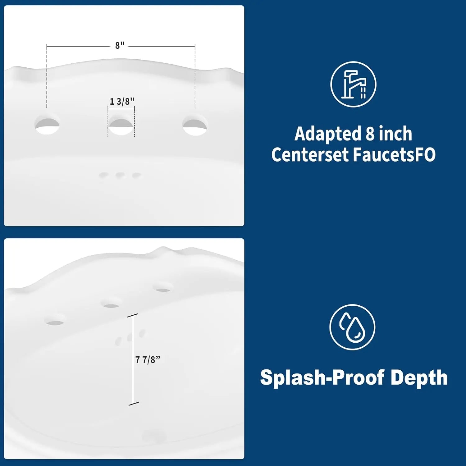 Installation is straightforward thanks to the open back design and three pre-drilled holes that fit most standard 8-inch widespread faucets. The included instruction manual and assembly kit guide you through a simple setup. For optimal stability and performance, professional installation is recommended if you are unfamiliar with plumbing.