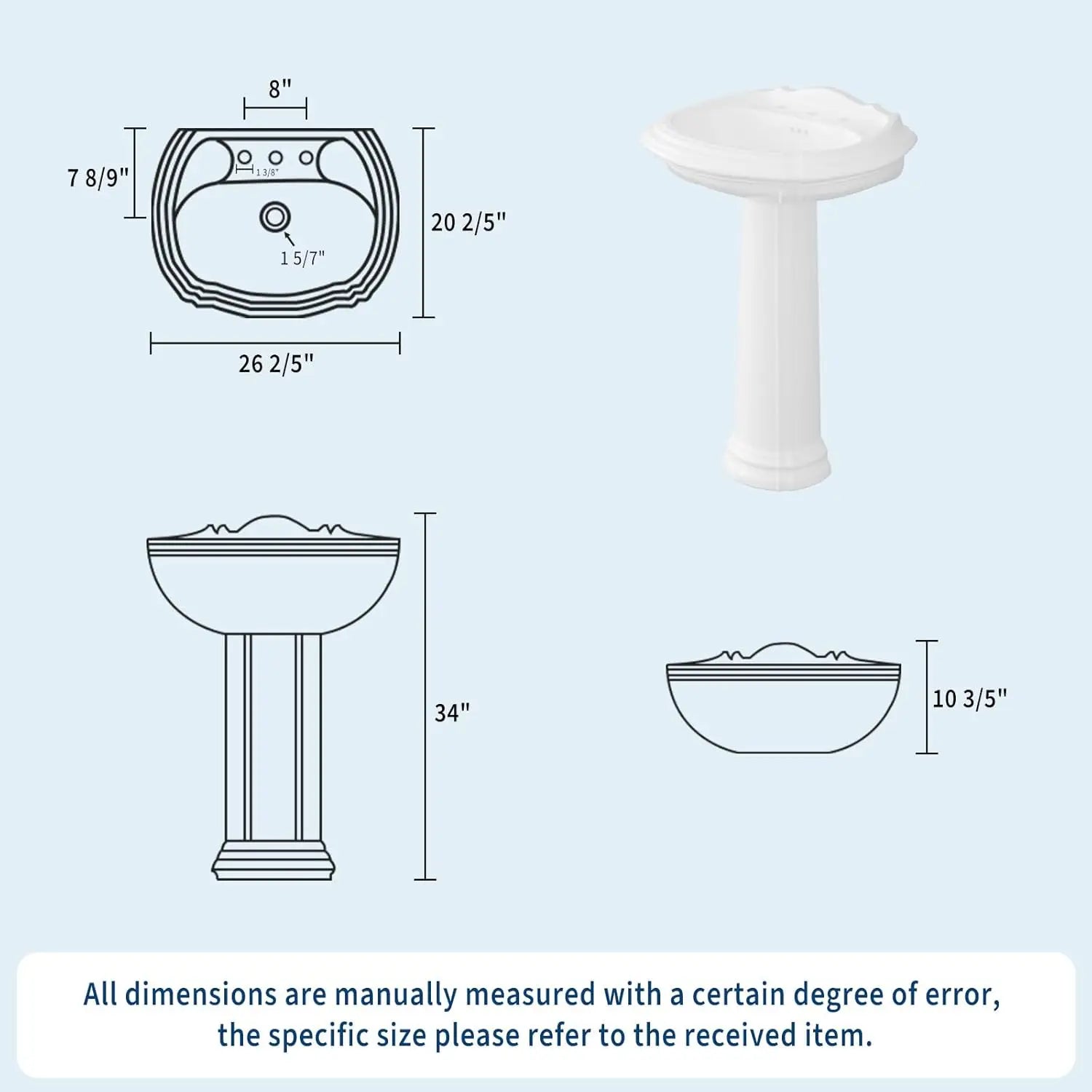 Upgrade your bathroom with this elegant freestanding ceramic pedestal sink, designed to bring both timeless style and practical function to your space. Made from premium vitreous china, the pedestal sink features a glossy white finish that resists scratches and stains, making it easy to keep clean and looking new. Its classic silhouette and compact footprint suit a variety of bathroom decors, from traditional to contemporary.