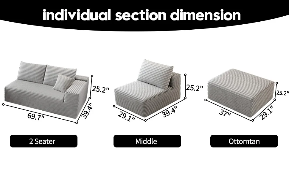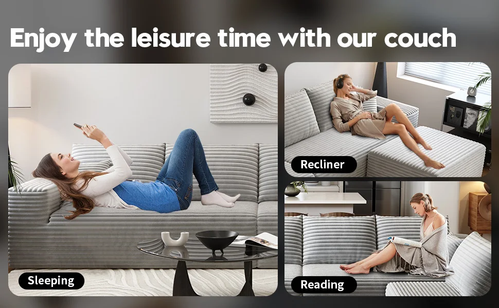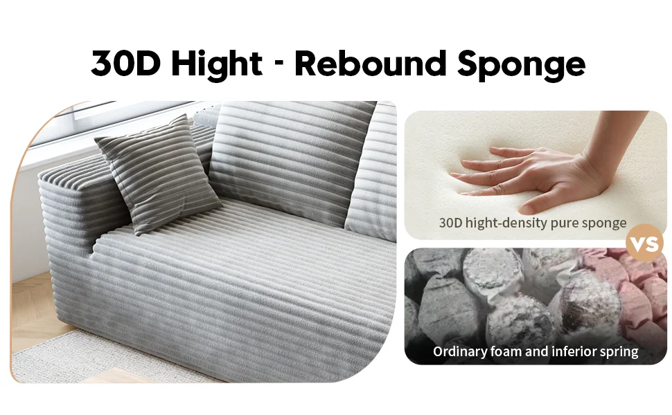Plush Corduroy Fabric: Indulge in the luxurious softness of cloud-like corduroy fabric, offering a plush texture and elegant luster.Pet-friendly and scratch-resistant, this fabric is easy to clean and effortlessly removes pet hair, ensuring your sofa stays pristine and comfortable