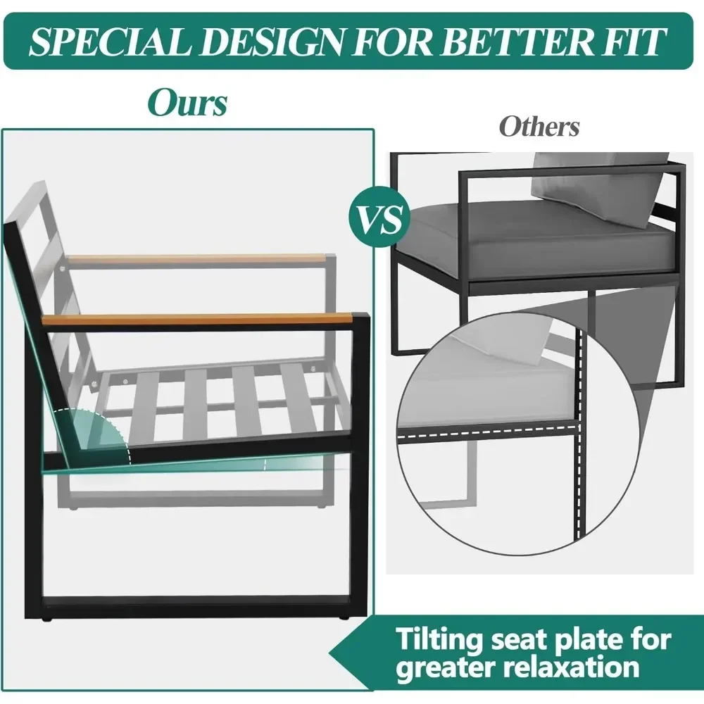 - ️EXCELLENT WEIGHT CAPACITY: Our furniture set includes two armchairs, one loveseat with wood armrest, and a coffee table. The aluminum conversation sofa set features loveseat that can withstand up to 600 lbs and armchair that can hold 352 lbs, the coffee table can hold up to 88lbs. The furniture set can be adapted to all kinds of floors, as our feetpads not only keep it stable but also protect the floor from scratches