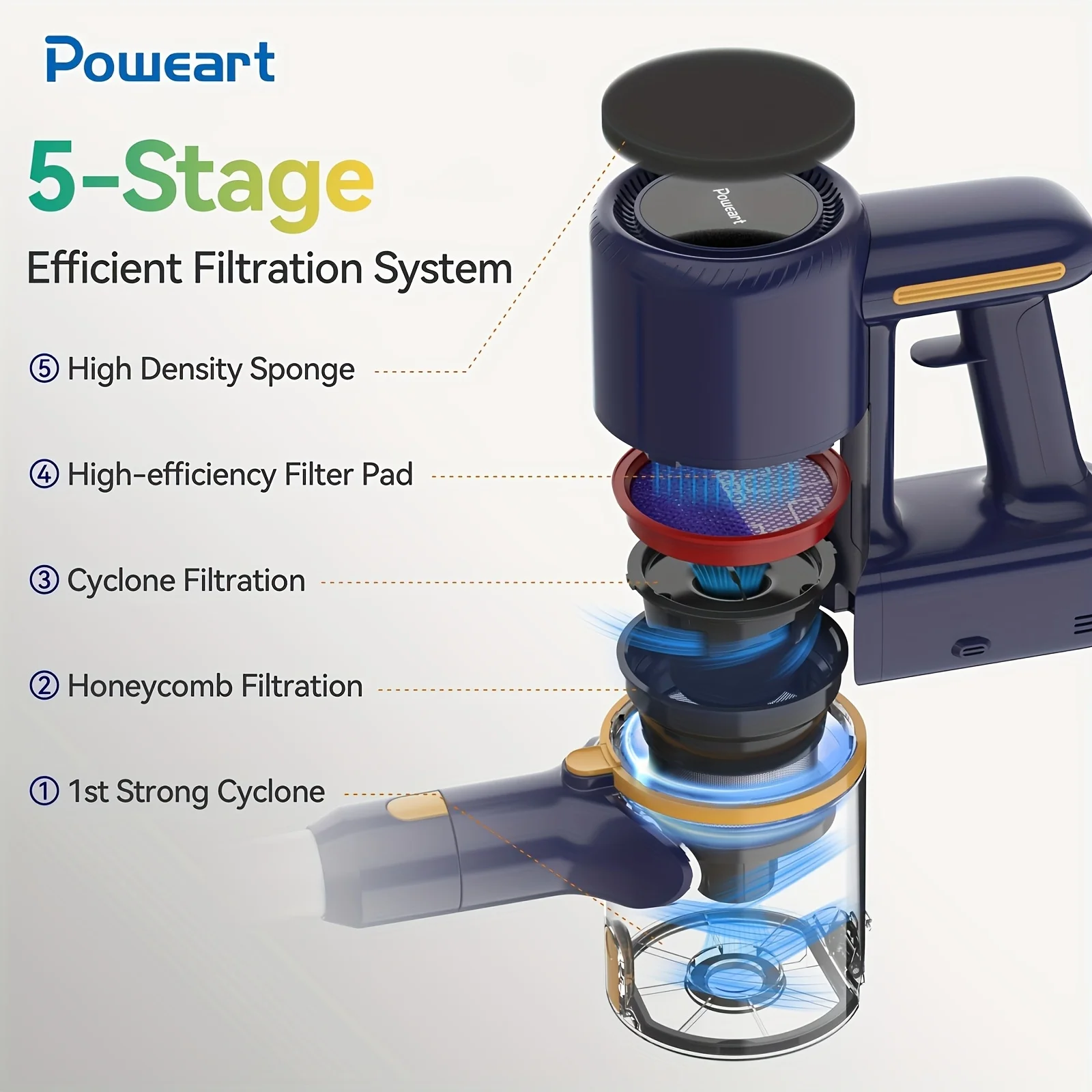 [Advehicled Filtration System] Our multi-stage filtration system captures up to 99.99% of fine particles, providing a cleaner and healthier home environment. The washable filters not only maintain cleaning performan but also extend the lifespan of the vacuum cleaner. An extra filter pad is included