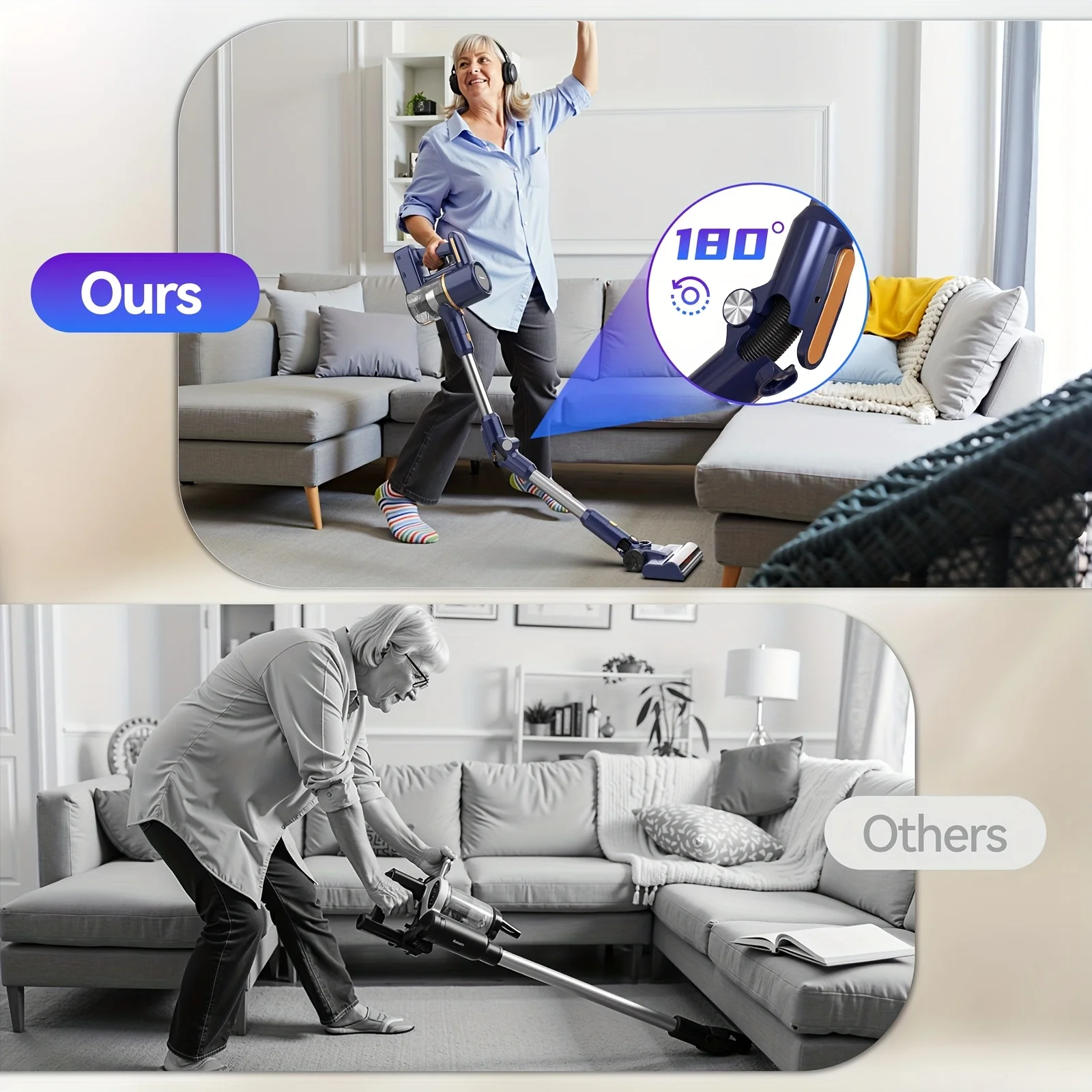 This 180-degree bendable vacuum cleaner has a unique design that provides pregnant mothers with a more considerate and healthy cleaning experience. It not only relieves the physical burden during pregnancy, but also provides comprehensive protection for the health of mothers and babies. At the same time, due to joint pain problems, the elderly often encounter difficulties in bending or squatting. The 180-degree bending vacuum cleaner is an ideal cleaning companion for the elderly.