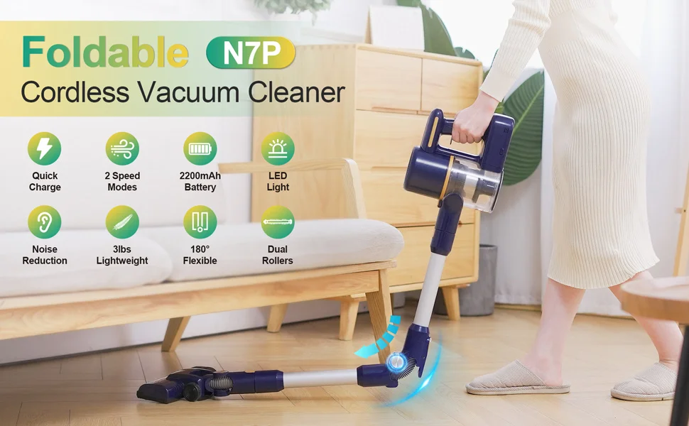 [Effortless Operation & Extended Runtime] With just a click, you can start the vacuum or For Switch between the two suction modes. The built-in 6-ll 2200mAh battery providing 5 extra minutes of runtime compared to other cordless vacuums.
