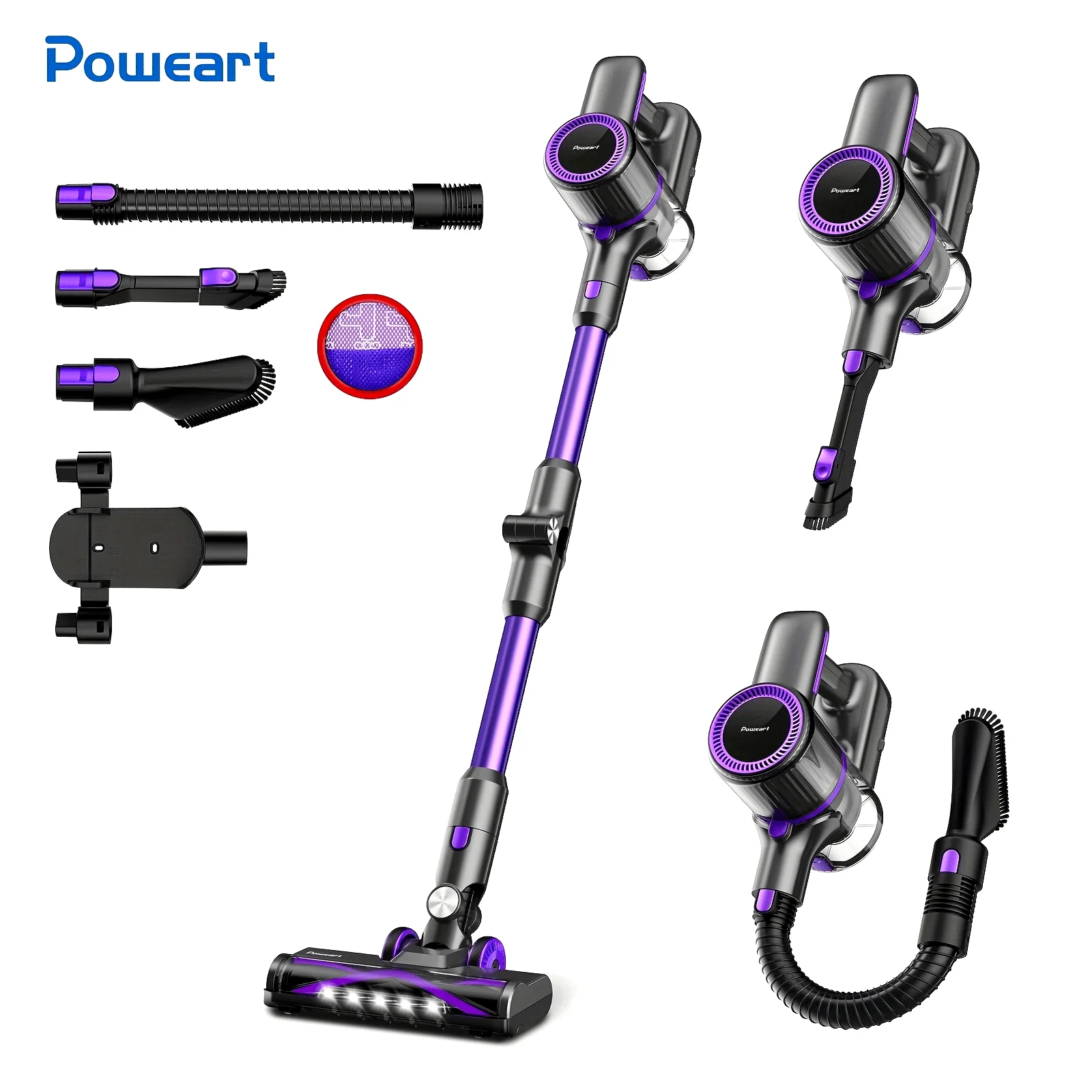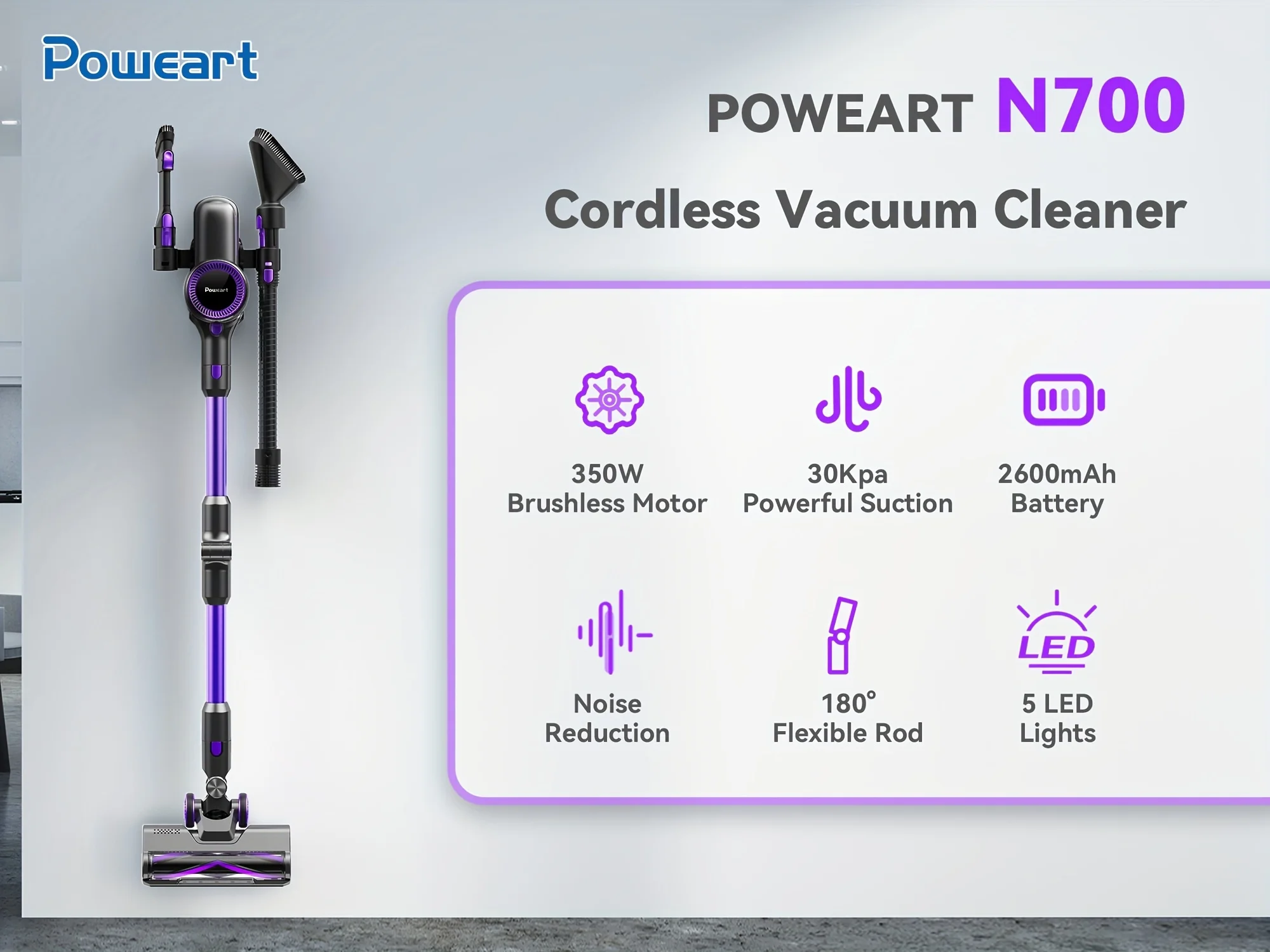 [Powerful Suction] 30Kpa suction power for efficient cleaning on mutiasurface,with a high-speed brushless motor