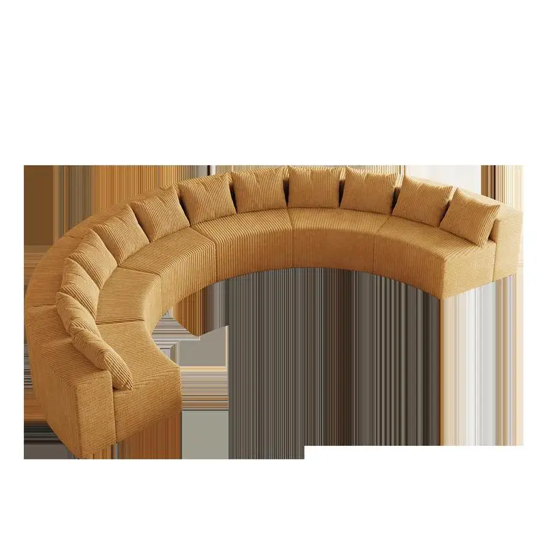 【UNIQUE DESIGN】 The curved sofa's unique shape instantly fills your room with a cozy ambiance, featuring beautifully detailed the curves of the armrests, Corduroy fabric, for an elegant look. This comfy couch also comes with 4 pillows for comfortable back support.