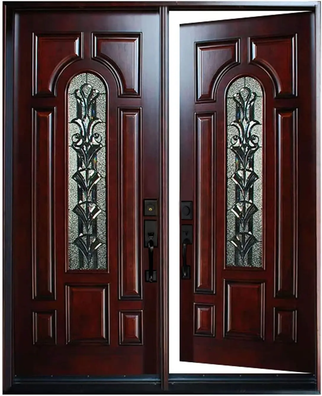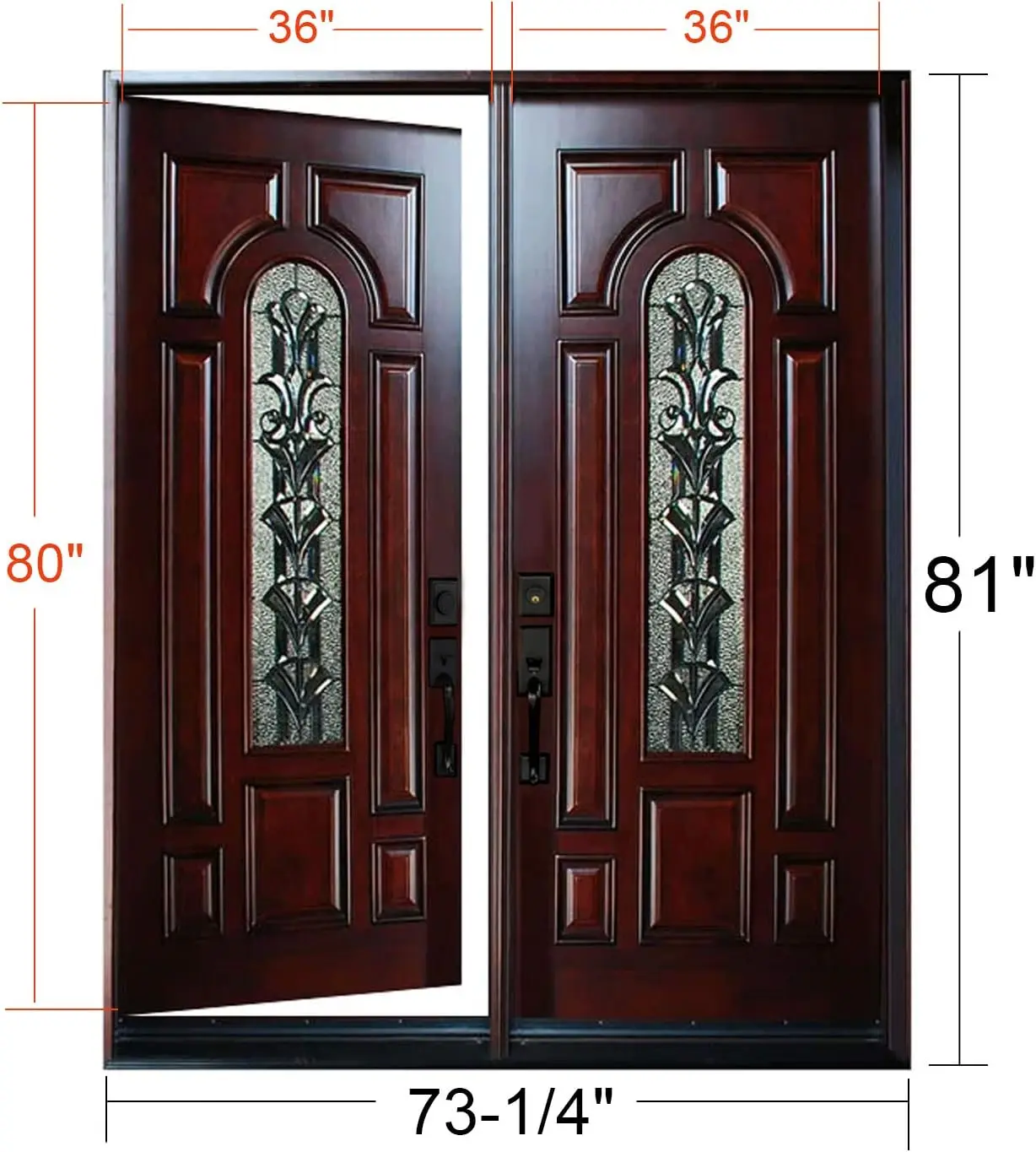 Exterior Mahogany Wood Double Door, 36"x36"x80", Outdoor Right Hand Prehung Front Glass Door