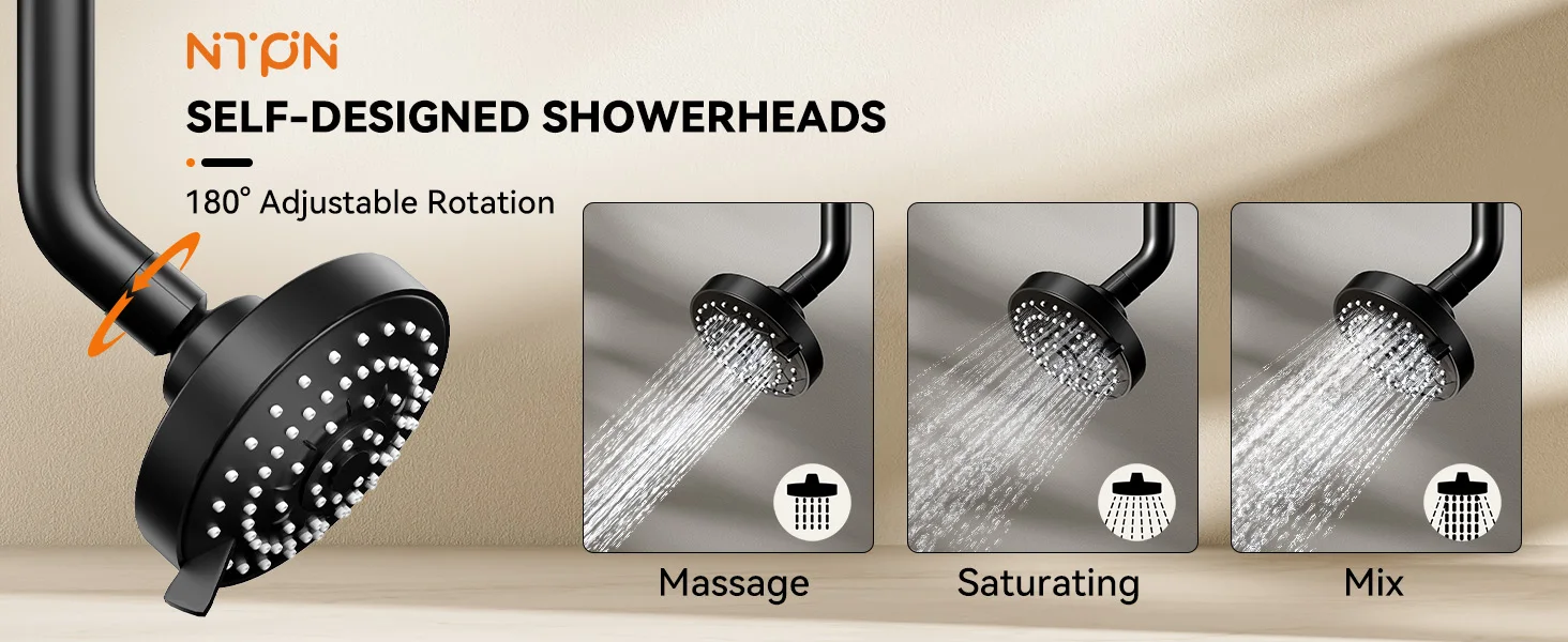[3 Spray Modes & Renter-Friendly]: Enjoy 3 spray modes: saturating, massage & mix modes. Plus: Tool-free 10-minute install with zero wall damage. No plumbing modifications needed, Ideal for hassle-free apartment AND home upgrades. Enjoy years of premium showers.