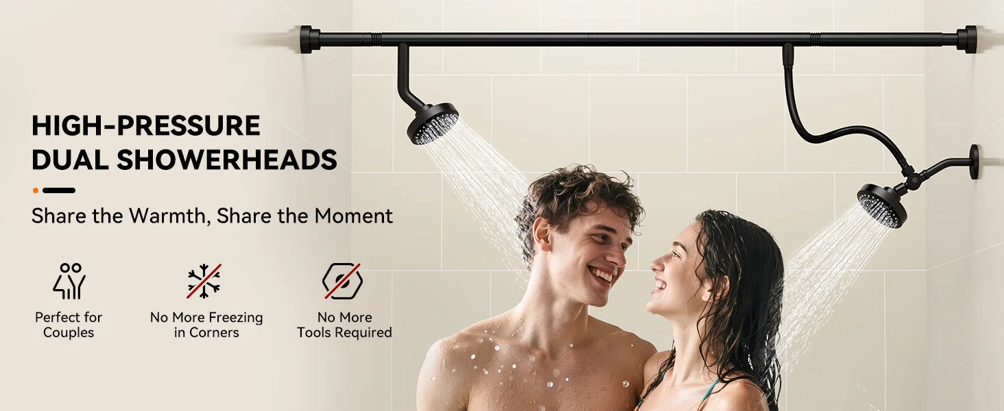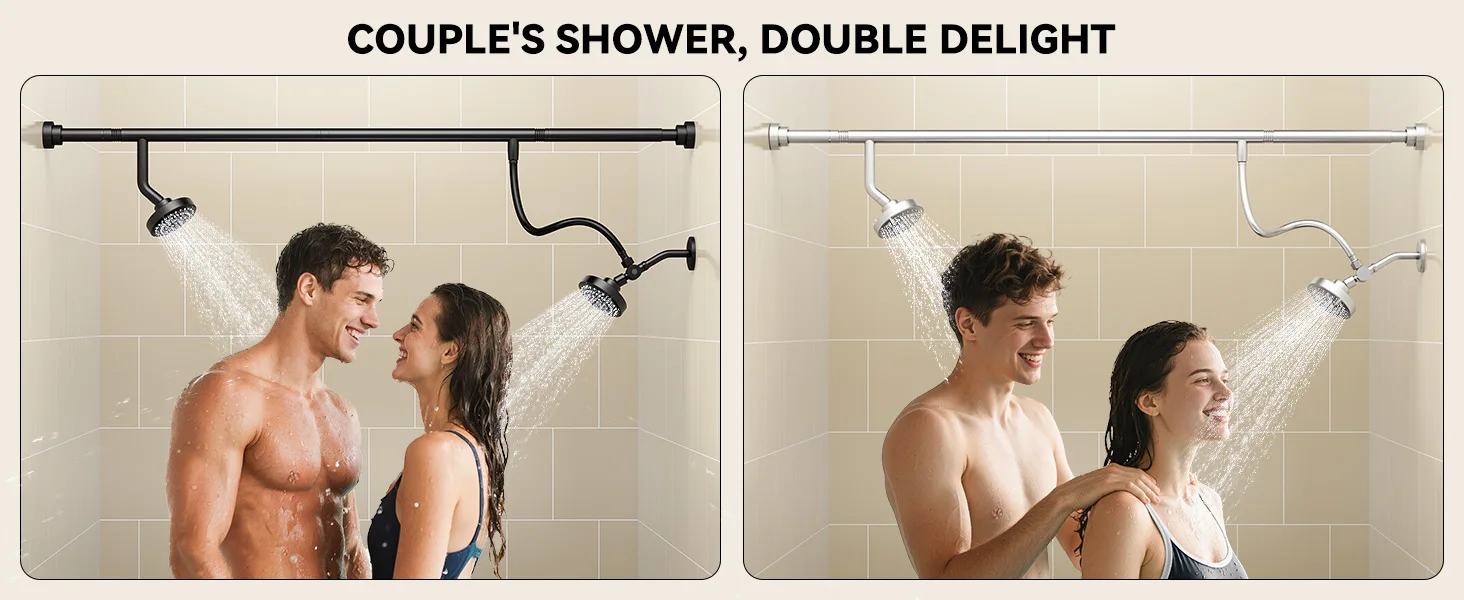 [Couples' Shower Experience]: Dual shower heads designed for shared moments, spacious dual shower heads let couples shower simultaneously without crowding. Experience harmonious water flow that transforms ordinary baths into intimate, spa-like bonding experiences.