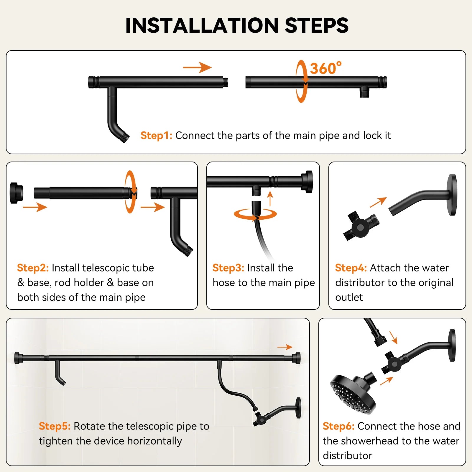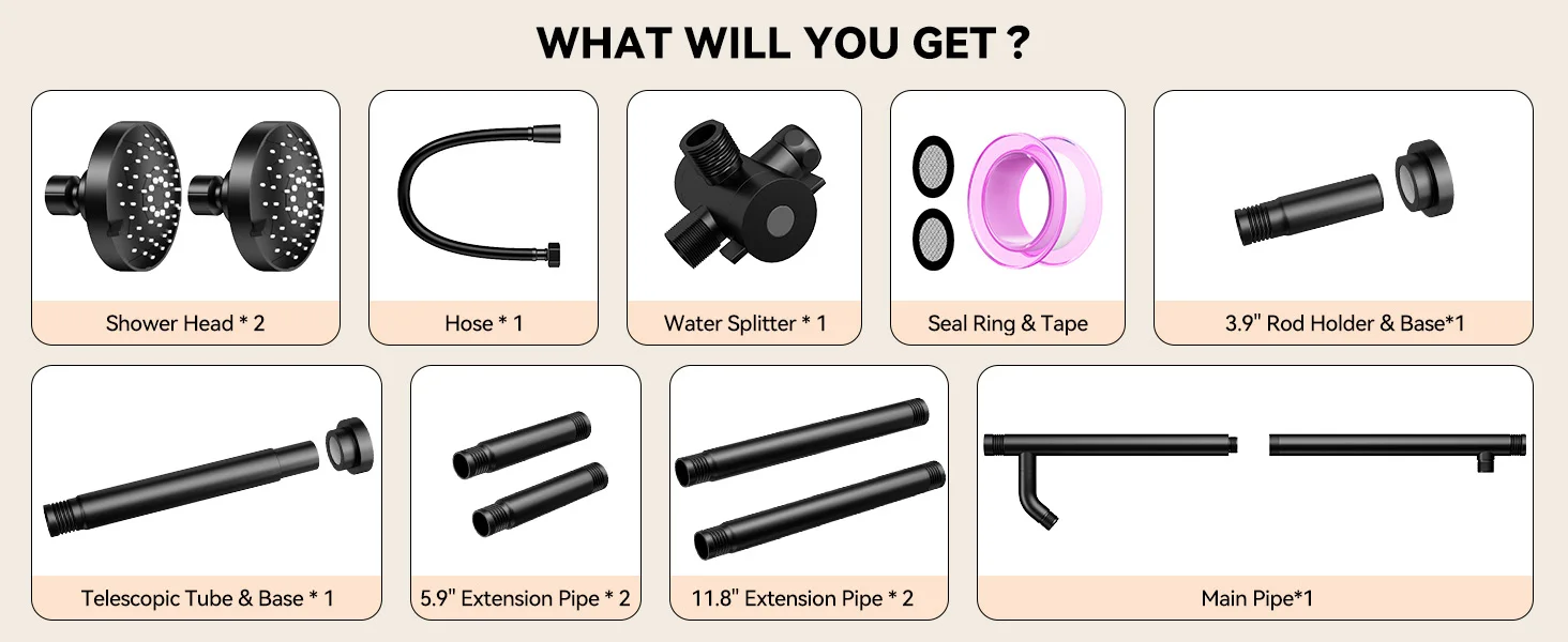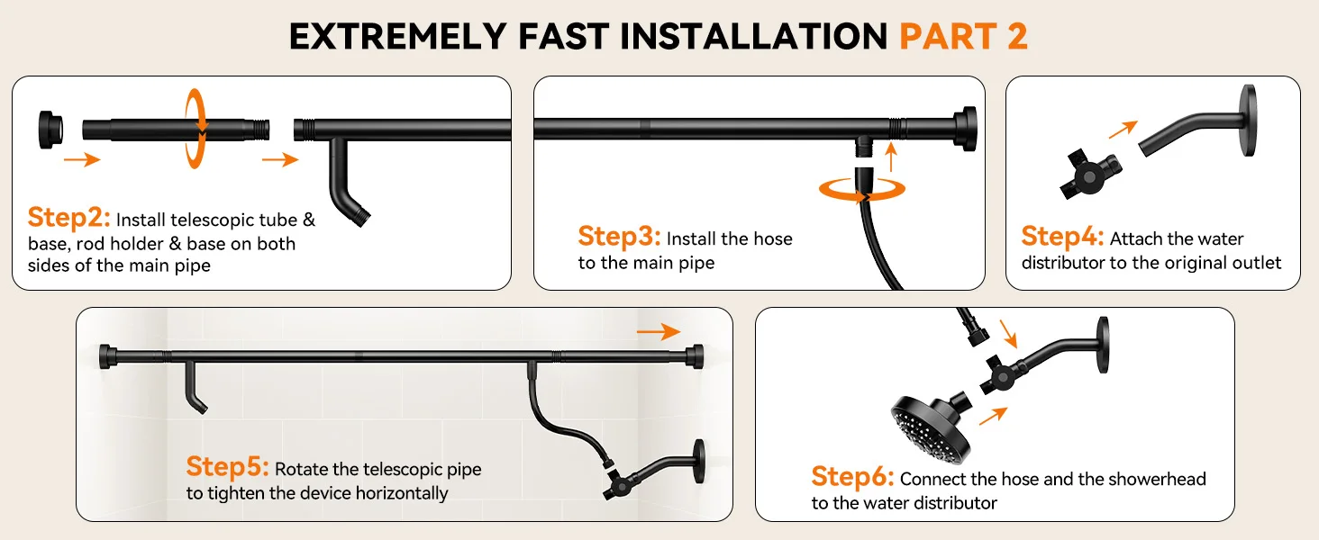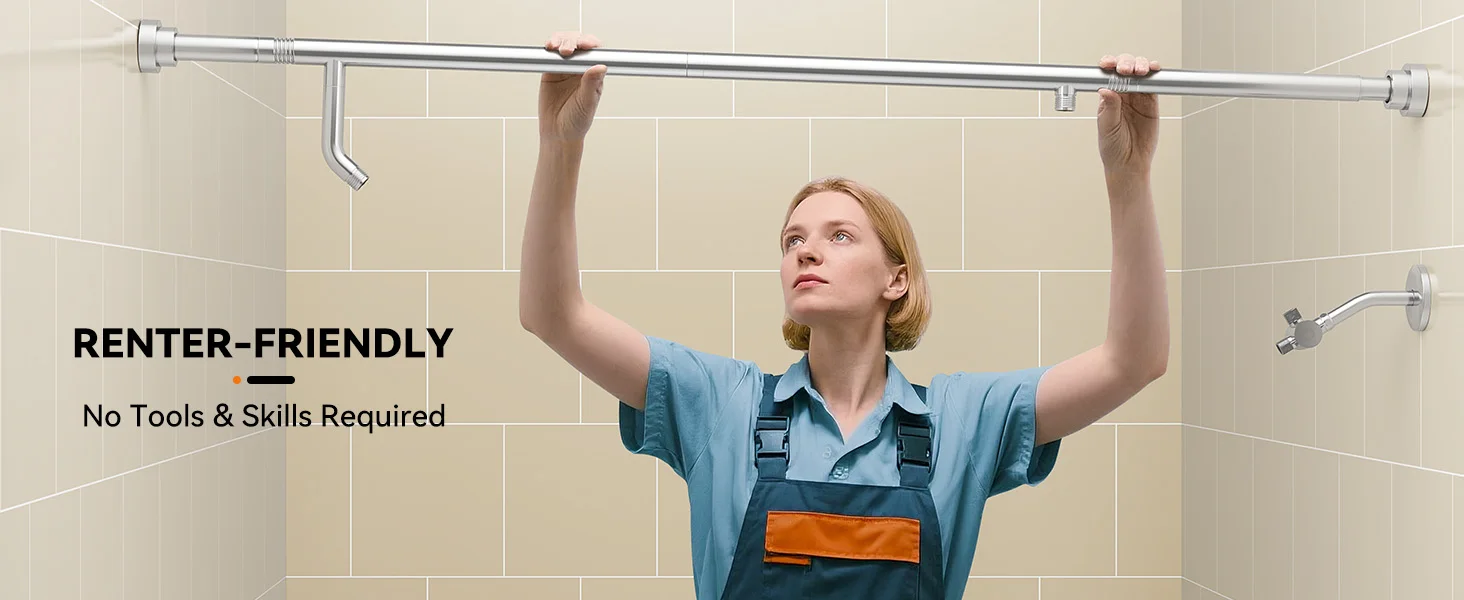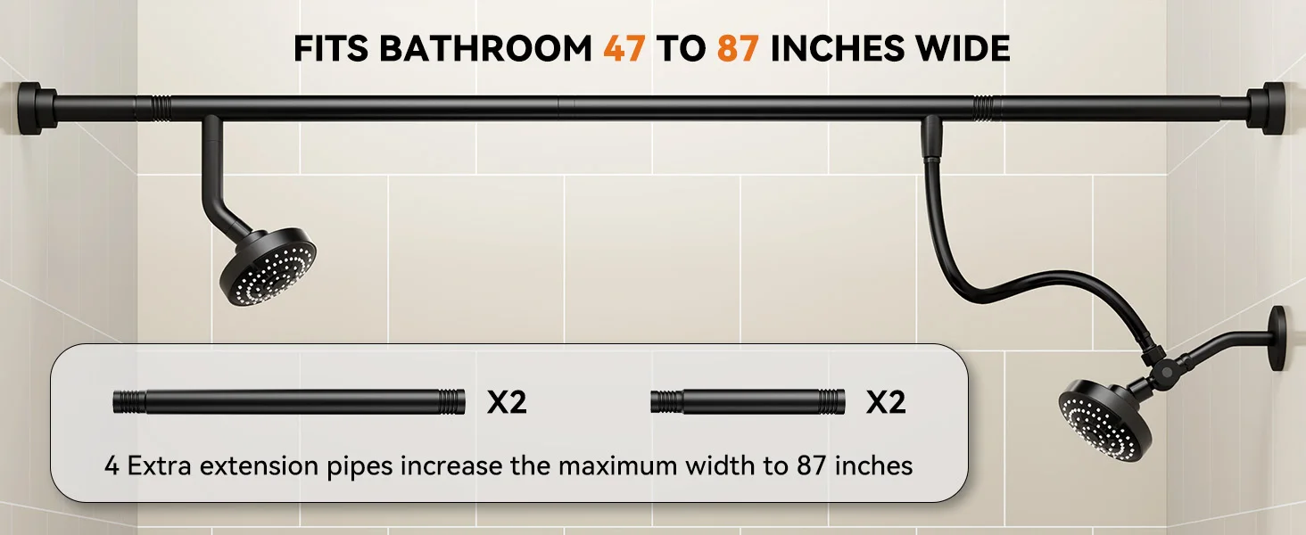 [Fits 47"-87" Bathrooms]: Engineered for variable bathroom widths, our dual shower system adjusts from 47" to 87". Perfect for narrow apartments OR spacious homes. Installs in 10 minutes – measure once, fit perfectly.