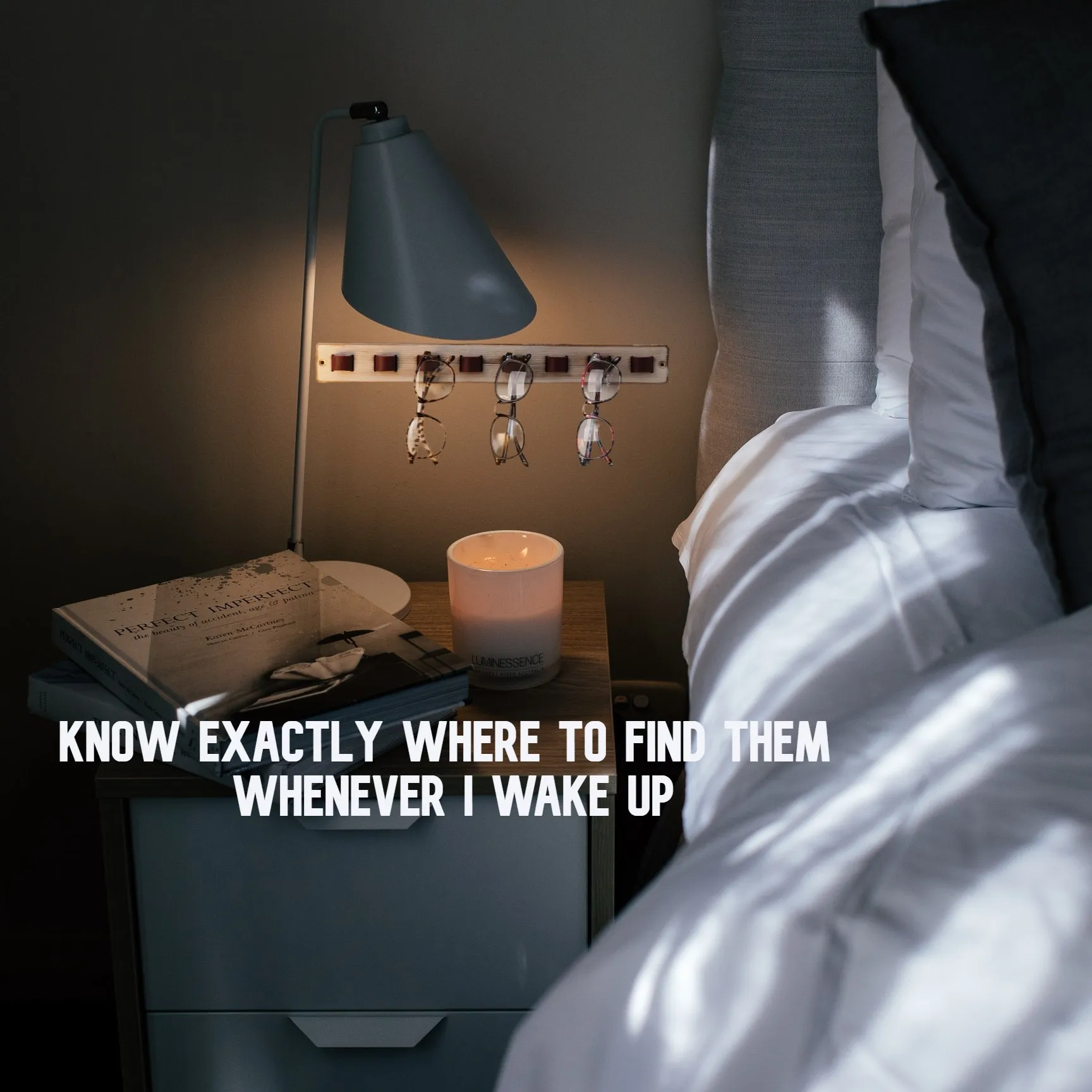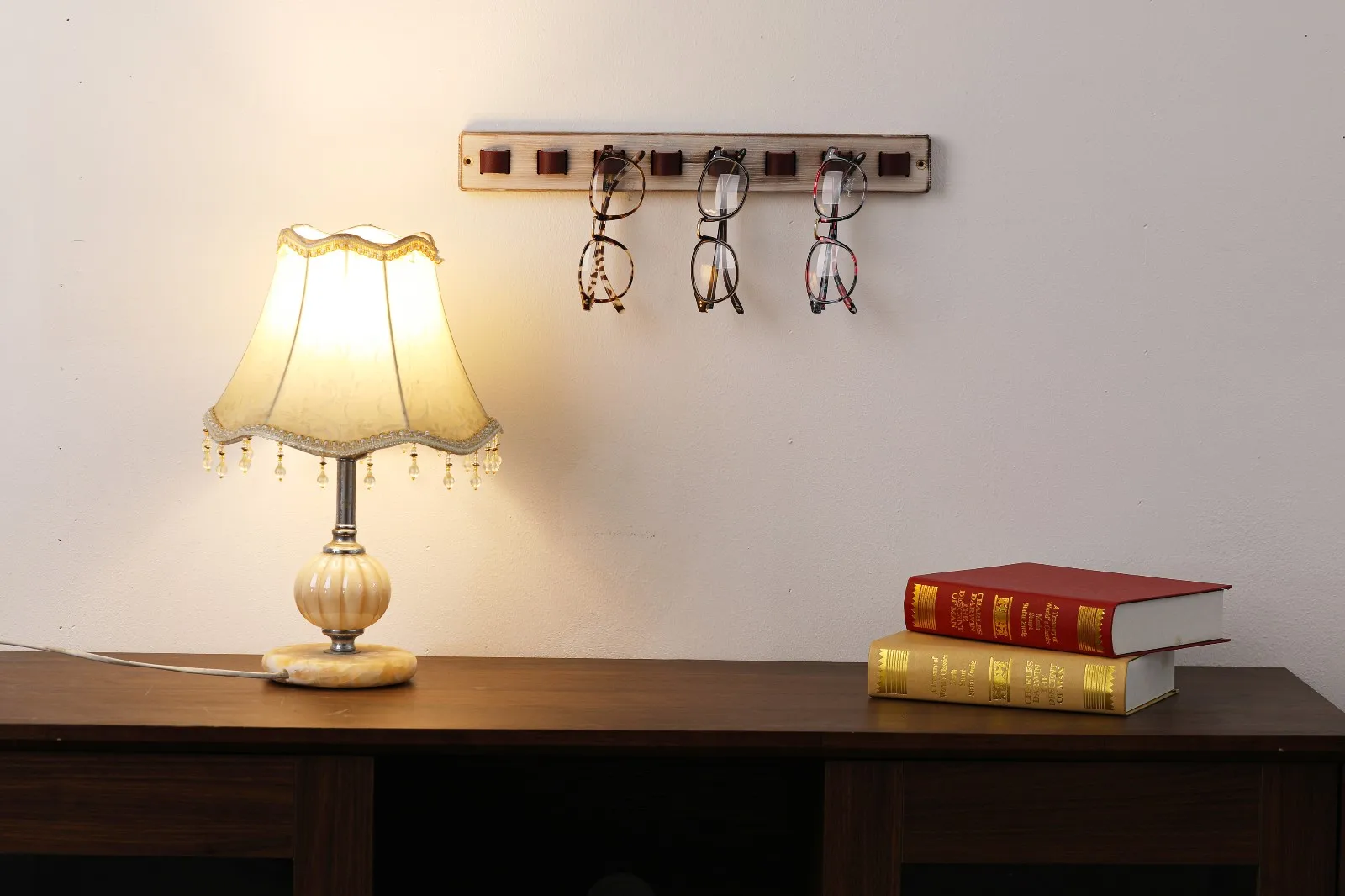 Hang your reading glasses above nightstand and know exactly where to find them whenever you wake up