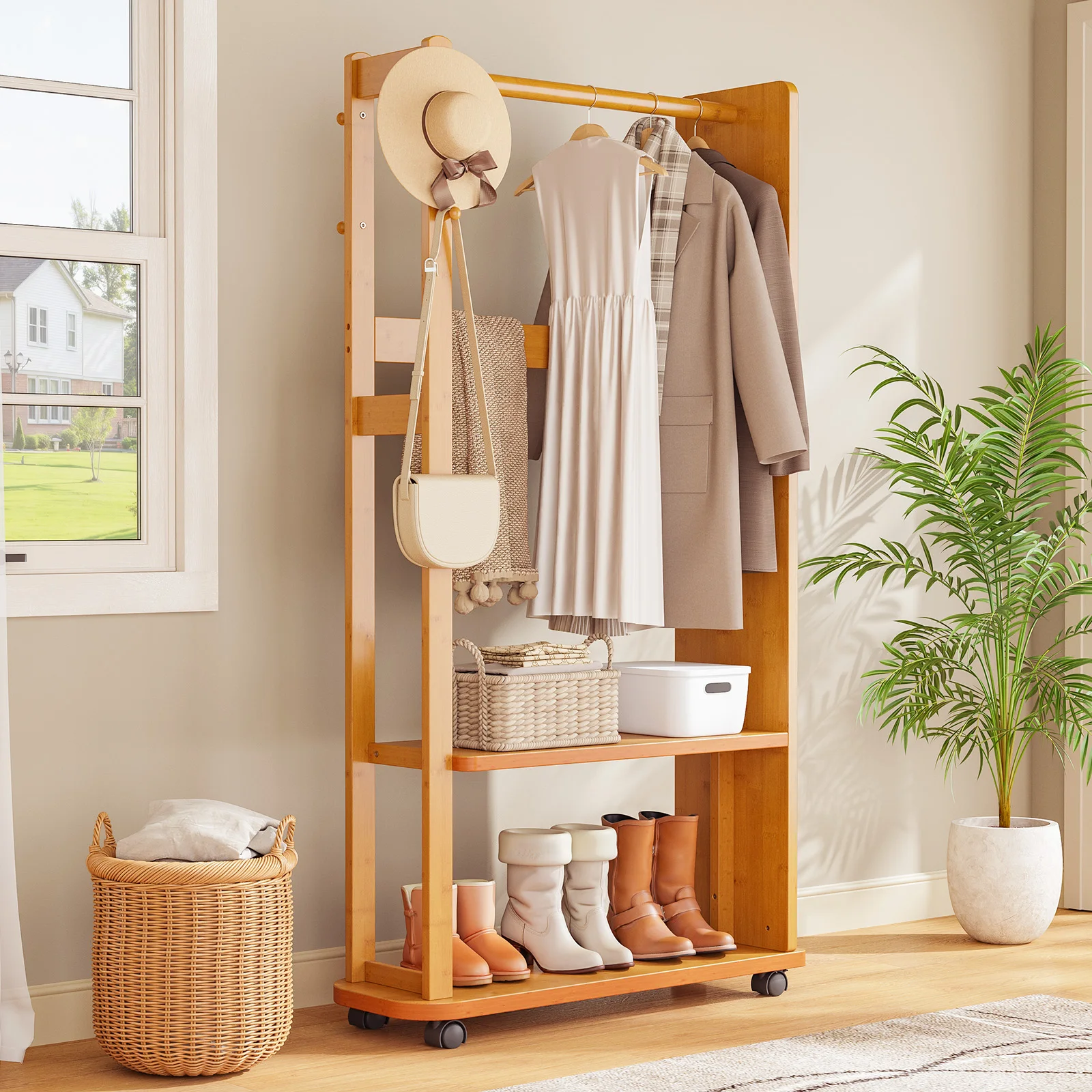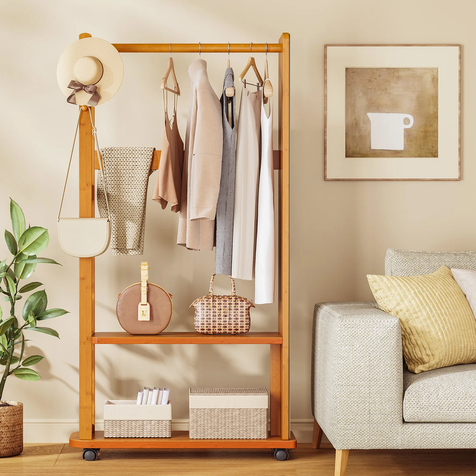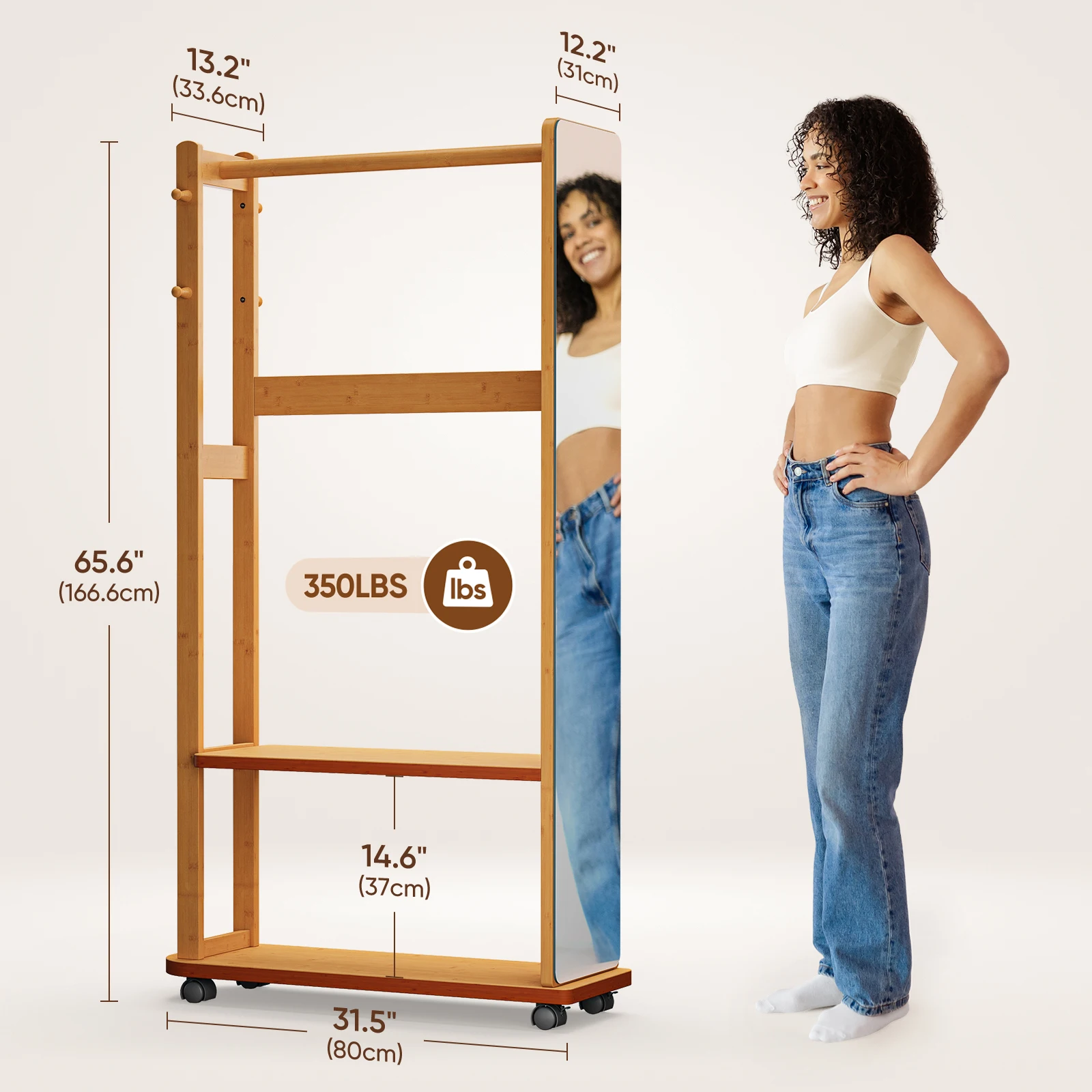 Full-Length Shatterproof HD Mirror Coat Rack Clothes for Bedroom Living Room Multi-Storage Mirror Stand