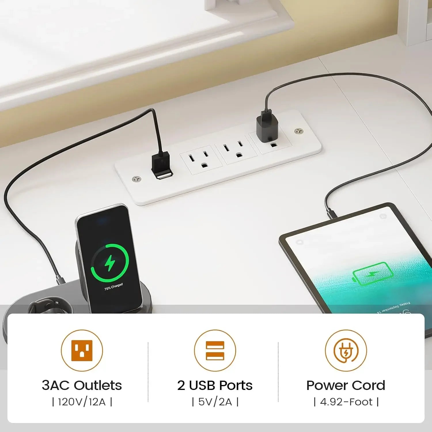 - 【User Friendly】The L shaped computer desk includes a built-in power strip with 3 outlets & 2 USB Ports provides convenience for charging your gaming gear, tablet、printer or phone.Don't worry about not having enough power sockets.