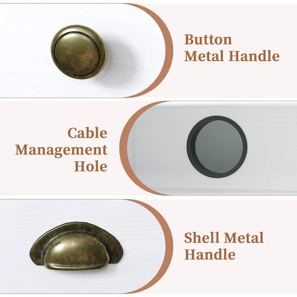 - Farmhouse Desk: The exquisite wood grain of the white desk is paired with elegant buttons and metal handles, with soft and smooth edges that add a touch of elegance and retro visual appeal, making the wood desk with drawers look more simple and smooth