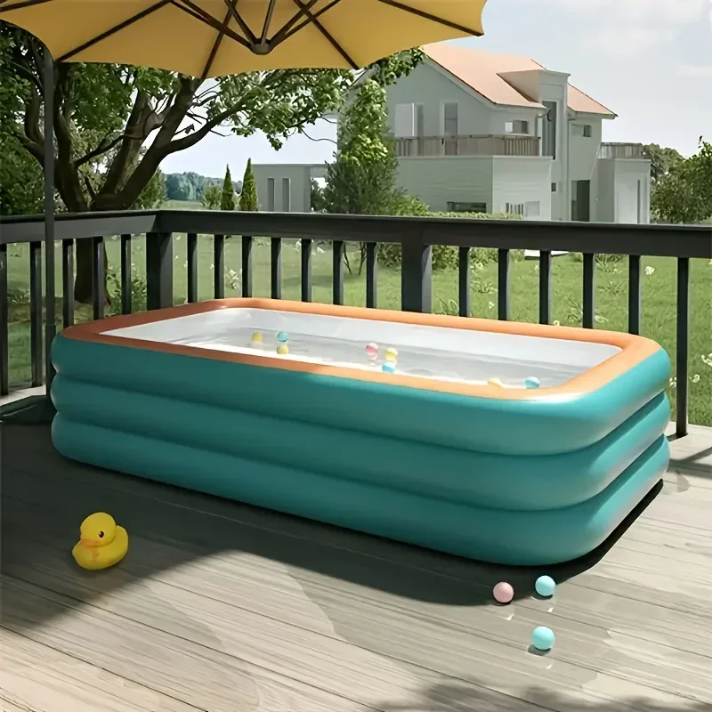 With its large inflatable design, this pool offers ample space for swimming and water parties in your backyard.