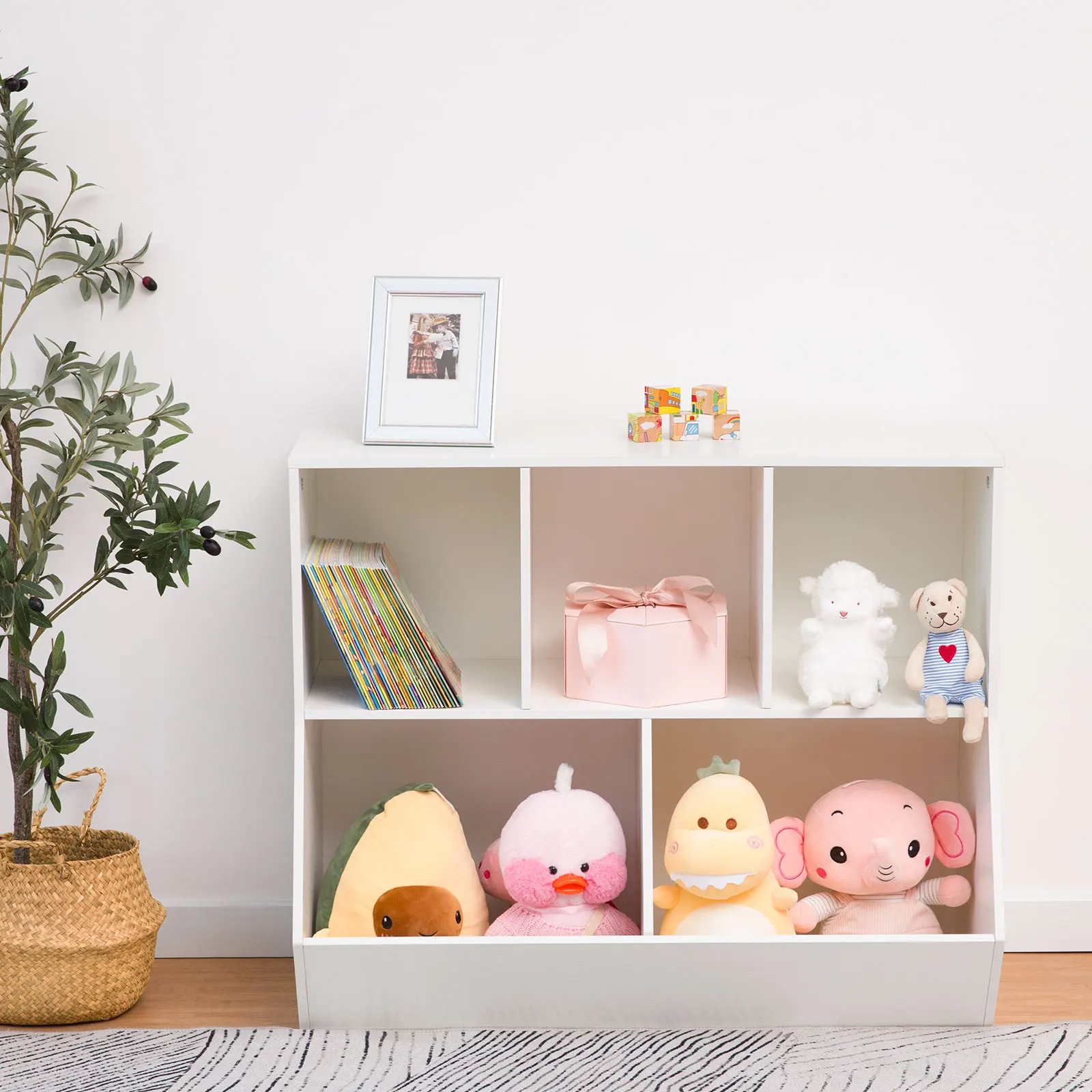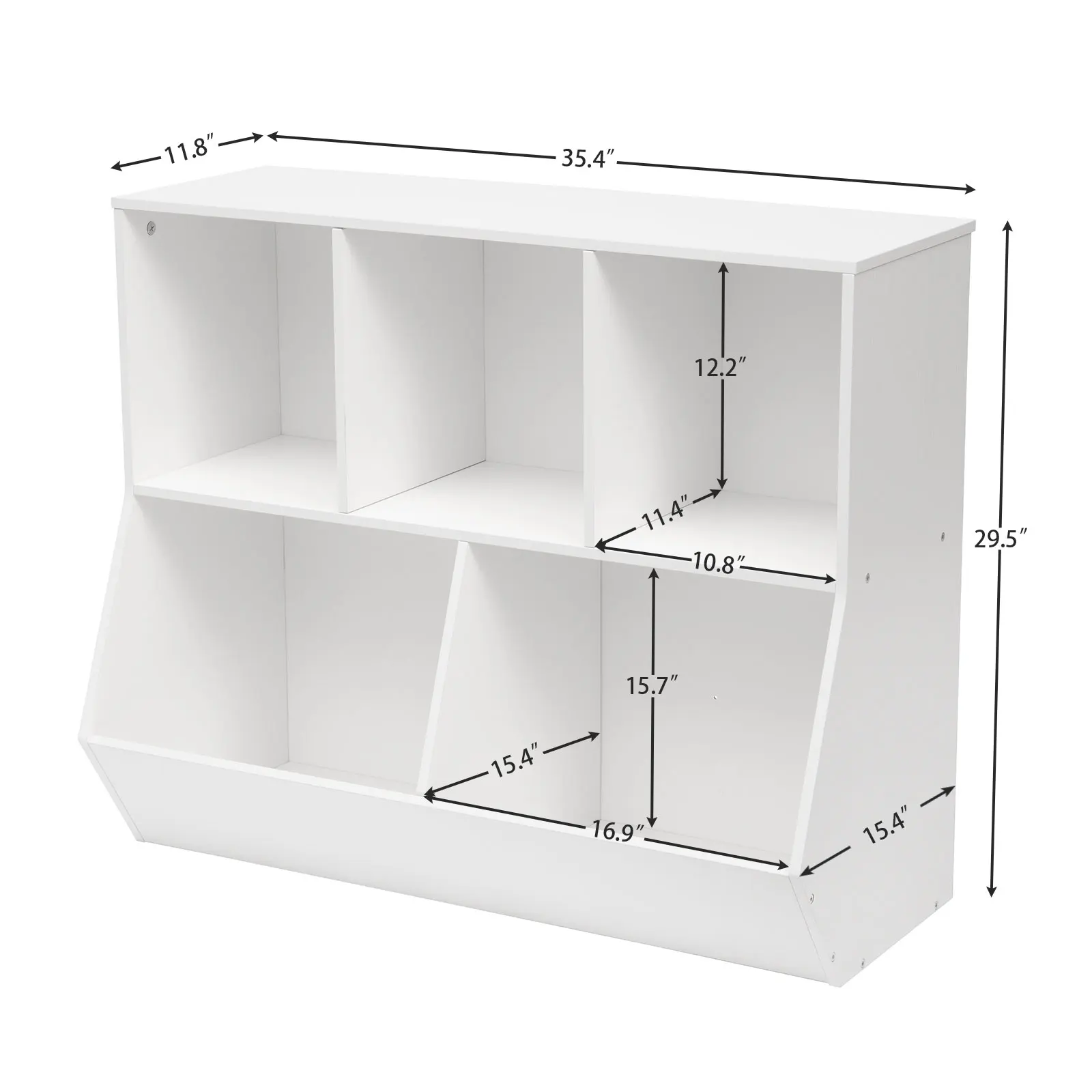 Gift for Children: The size of this kids bookcase is 11.8"D x 35.4"W x 29.5"H. This is an ideal height for children to see and use all their favorite books and toys. The HOOBRO 5-cubby bookshelf for kids with footboard can stimulate and inspire children's reading and storage abilities