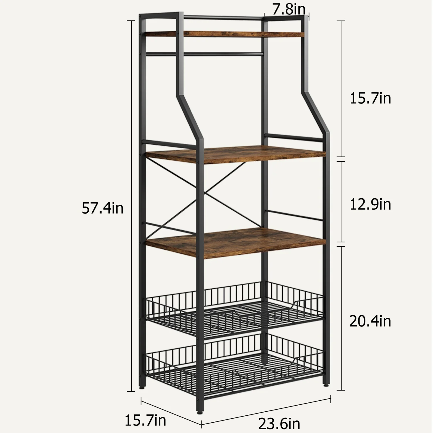 Multipurpose Kitchen Storage Shelf: This rustic baker rack combines a coffee bar table, buffet table, and storage racks to give you plenty of storage space. Ideally, it is your microwave stand, coffee bar station, snack rack, or spice rack organizer to support your kitchen goods. This coffee bar table is designed to organize your kitchen groceries neatly.