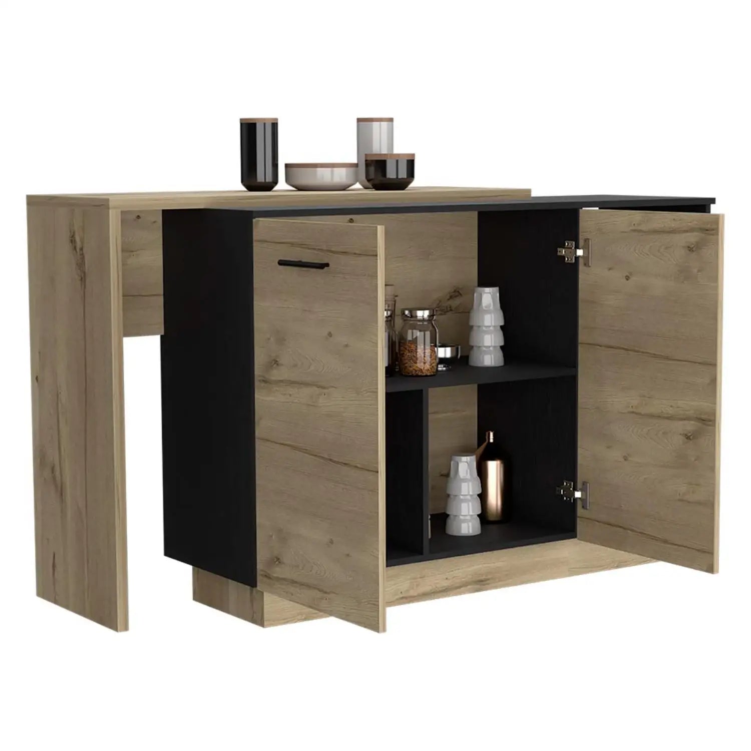 The Sicilia Kitchen island is a must-have in your kitchen. Described as the perfect mix of functionality, elegance, and superb design. With a two-level countertop, this product has a lot of features for your convenience. One side features two cabinets that will provide you with a ton of storage space with its three interior shelves for larger items (each shelf is 14.3 Inch High x 15 Inch Deep ) and two exterior shelves to display your decorative or frequently usable items. On the other side, you will have plenty of legroom to sit on the kitchen island and enjoy dinner while sitting on a stool.