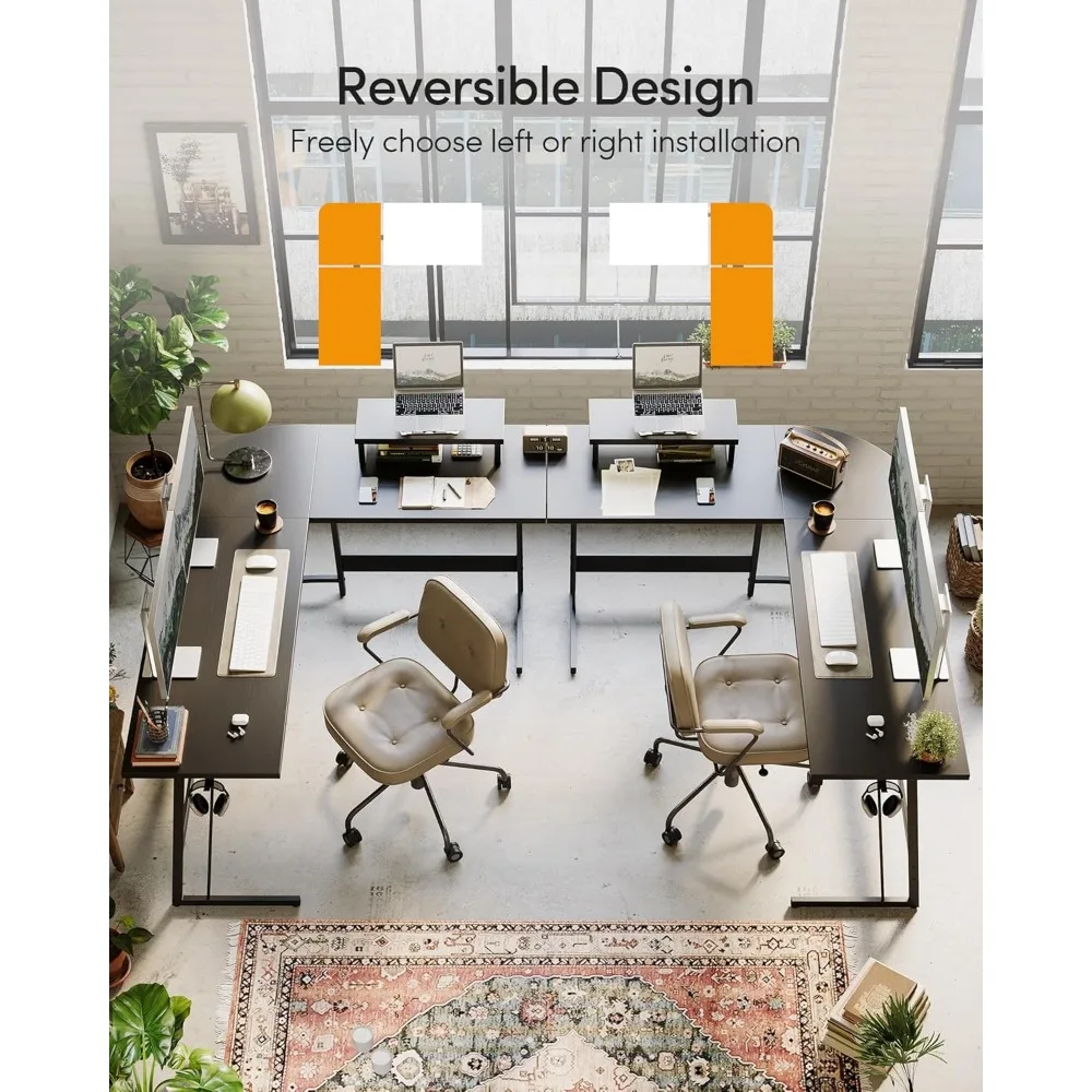 This product is designed to enhance your gaming experience with its L-shaped gaming desk. It offers optimal legroom and a convenient storage solution, along with a large surface area and a spacious monitor stand that can accommodate multiple screens effortlessly. The desk is not only ideal for gaming but also serves as a versatile workspace for home offices, study areas, or writing stations. It provides ample space for computers, laptops, books, and other accessories, fostering a productive environment. Constructed from high-quality materials, the desk is durable and sturdy, ensuring stability during intense gaming sessions or heavy office use. Available in three different colors and sizes, it adds a sleek and modern aesthetic to any room. The flexible design includes a movable monitor shelf that can be adjusted to suit your specific needs, and an iron hook that can be installed on either side to cater to your personal preferences. This desk is designed to provide ultimate comfort and convenience for both gaming and working purposes. We place a high value on customer satisfaction and offer exceptional customer service. Our dedicated support team is always ready to assist with any concerns, answer questions, and provide support throughout your entire customer journey. We are committed to ensuring a positive experience for all our customers.