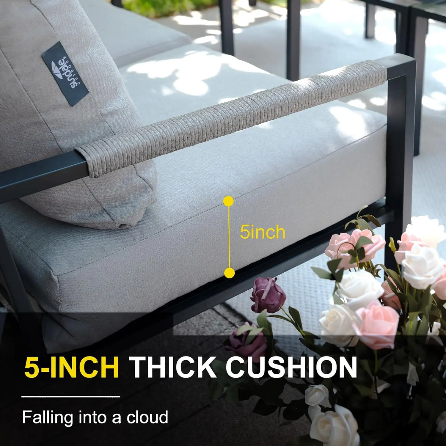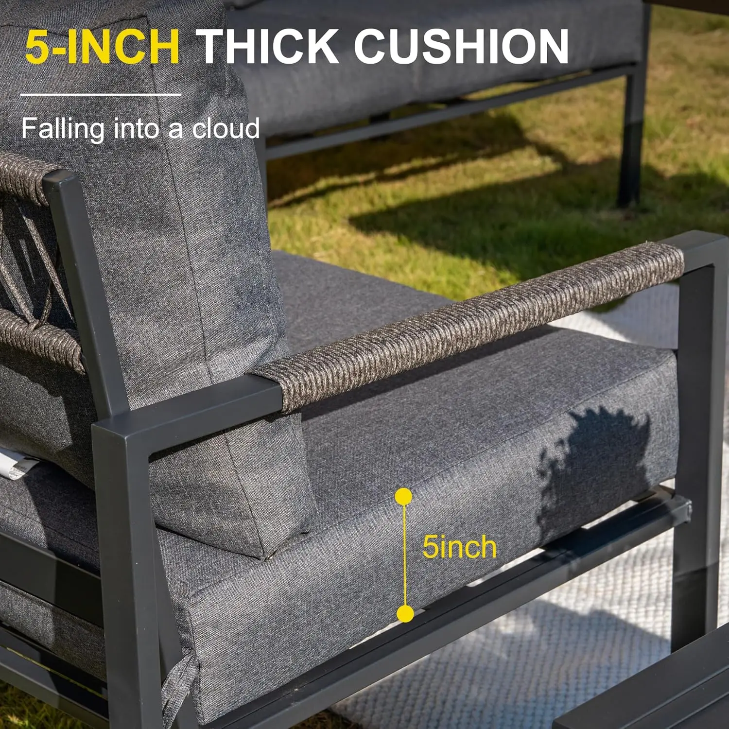 - 5-Inch Thick Cushions: Extra-thick, 5-inch cushions provide maximum comfort and support for long hours of relaxation outdoors