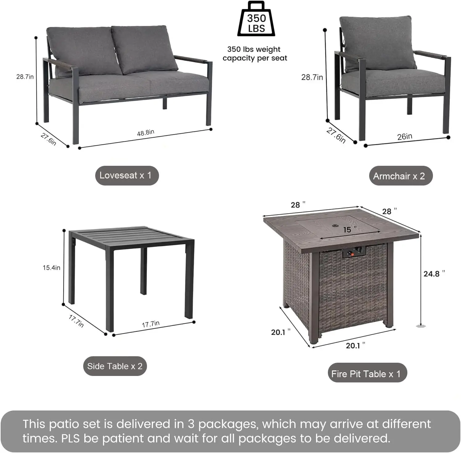 | Size | 2 Armchair+Loveseat+2 Side Table+Firepit Table |