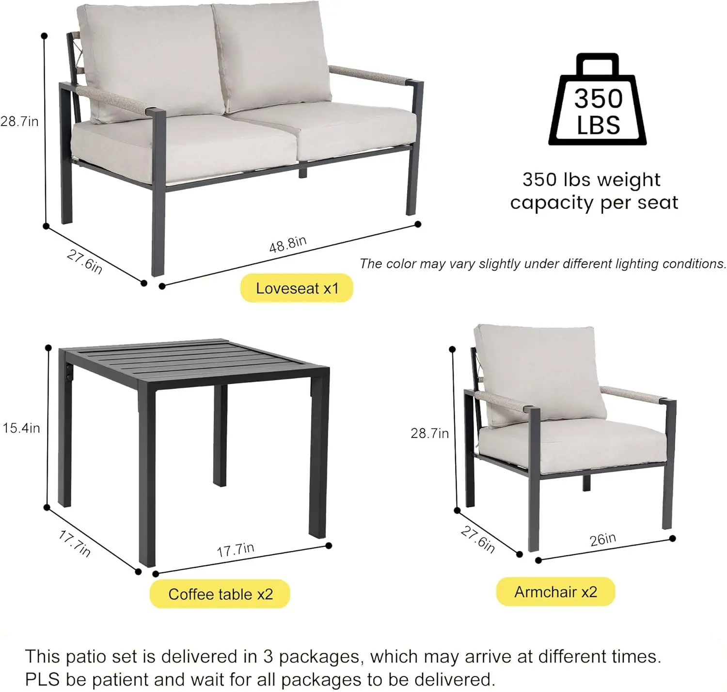 - Easy to Assemble: Designed for quick and easy assembly, allowing you to set up this outdoor conversation set with minimal effort