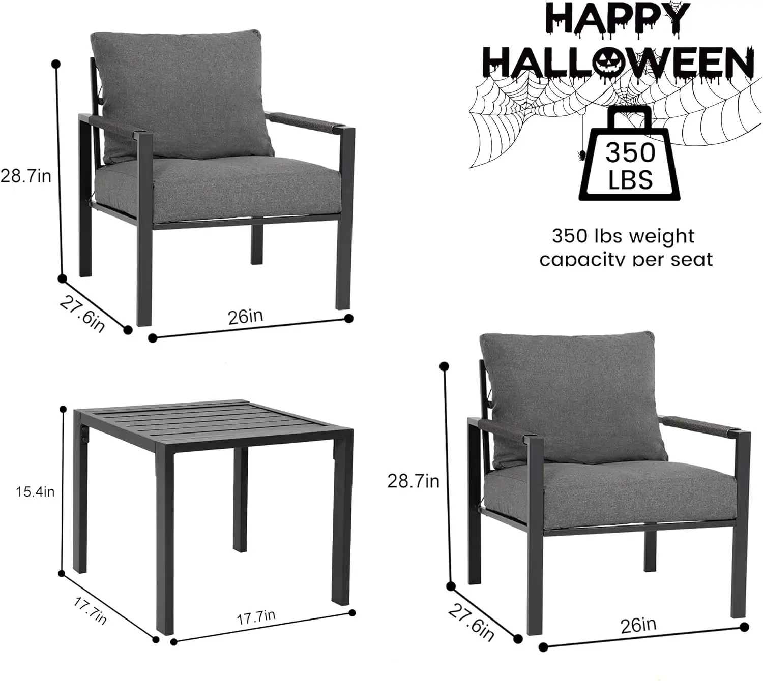 - Durable Metal Frame: Built with a strong metal frame for added stability and durability, this metal patio furniture set perfect for outdoor conditions