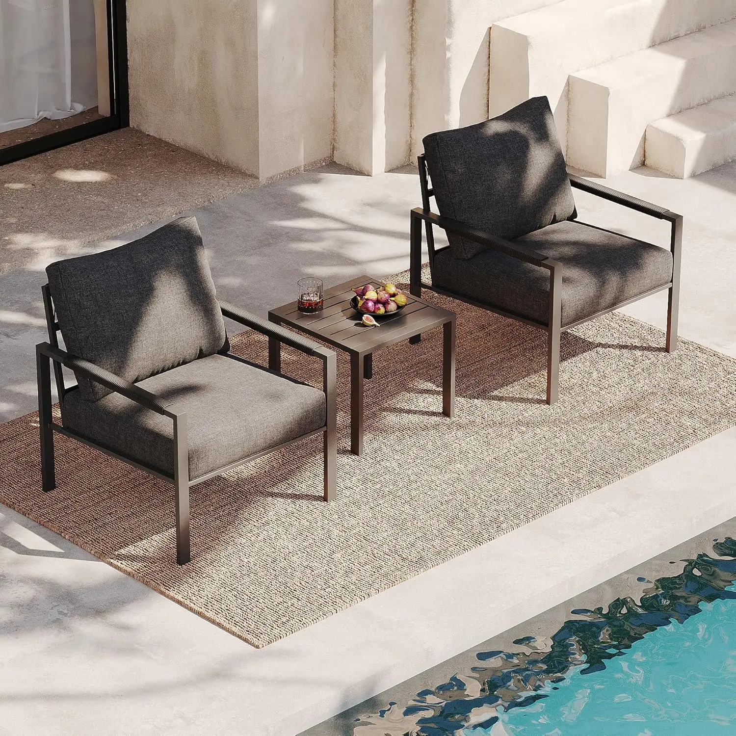 - Wicker Design on Backrest & Armrest: The stylish wicker accents on the metal patio set's backrest and armrests enhance both the look and comfort of the seating
