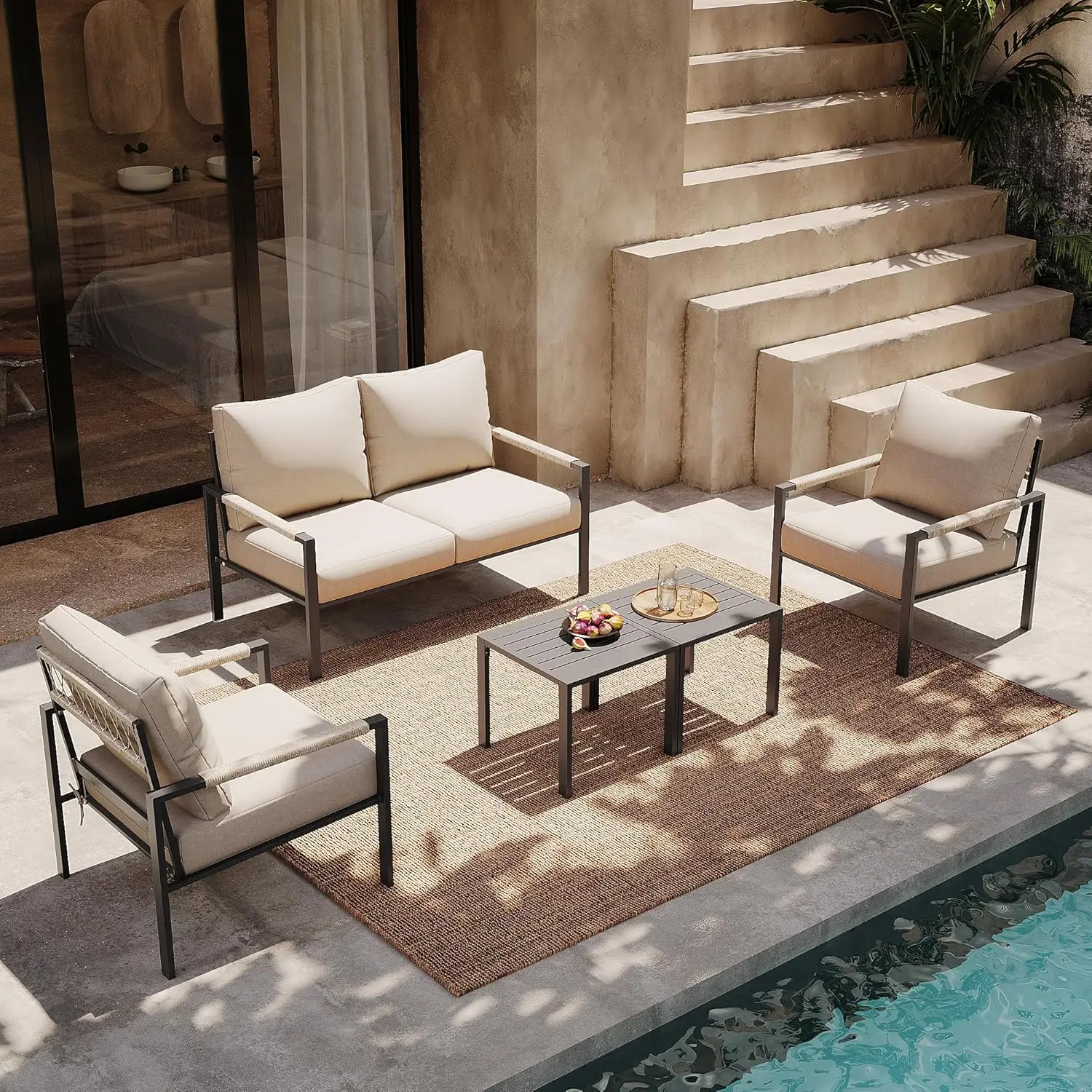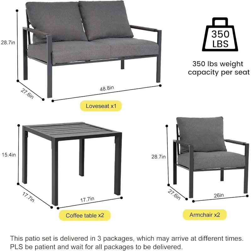 - Weather-Resistant & Fashionable: Weatherproof materials ensure longevity, while the modern design makes this metal sofa set a fashionable addition to any outdoor space