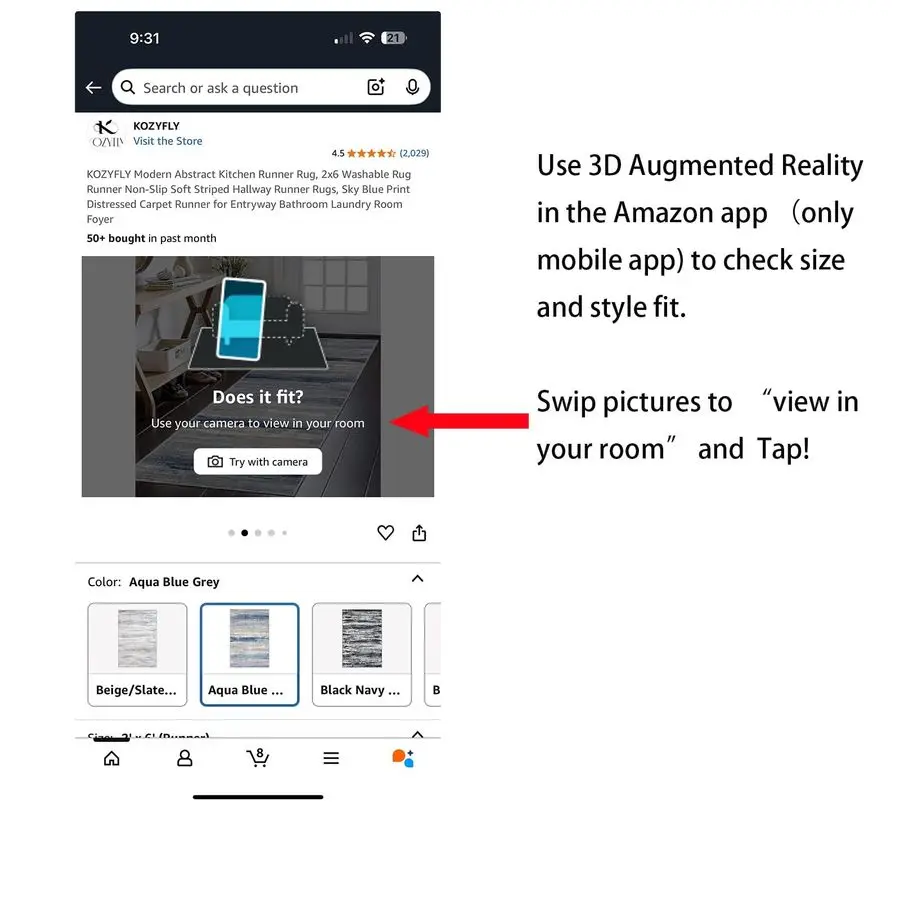 Size 2x624x72. Thickness 0.32 inch. Use 3D Augmented Reality in the Amazon app to check size and style fit. Color NoticePredominantly Blue Grey with subtle white and minimal brown accents slight color variations may occur due to batches or settings. Colors may differ under lighting, but design vibrancy and durability remain