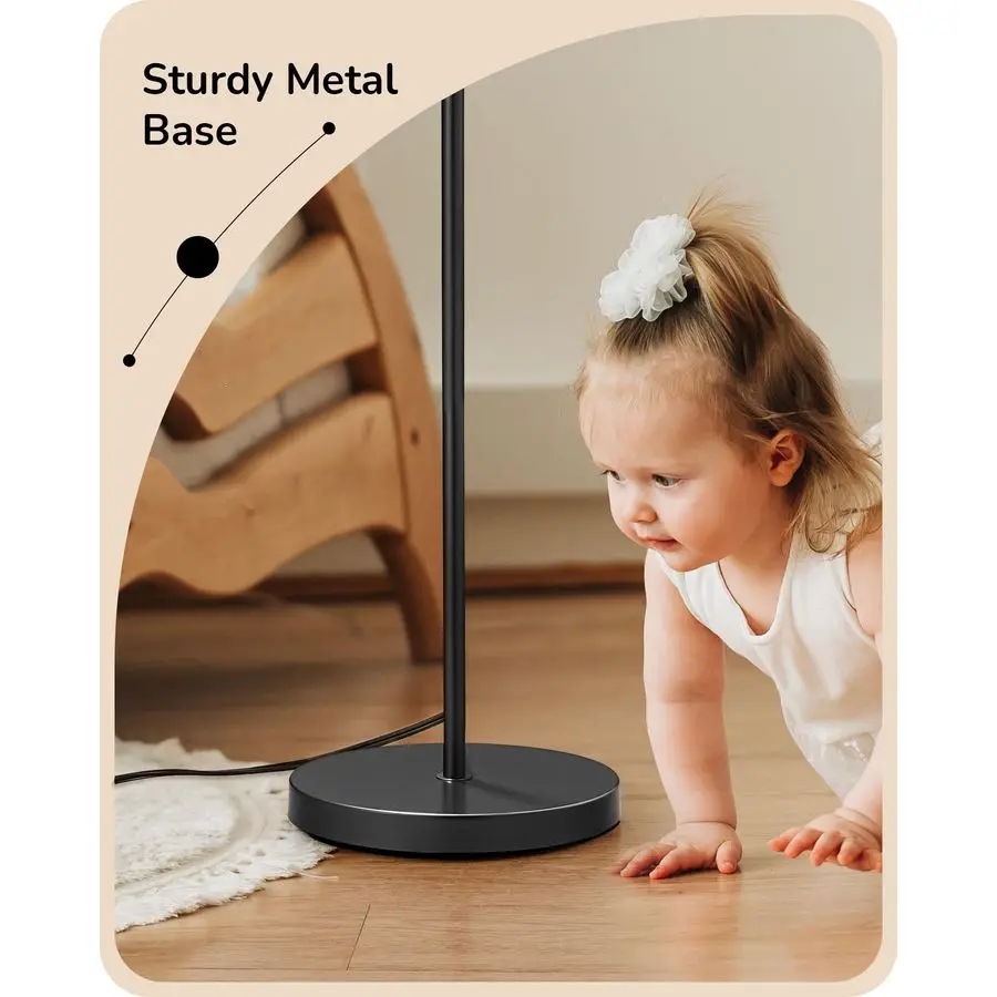 Sturdy Weighted Base Crafted with a heavyduty metal base, the standing lamp stays stable and tipresistant, reducing the risk of wobbling or accidental knockover ideal for homes with kids or pets, it provides a safe and reliable lighting option for your living room, bedroom, or office