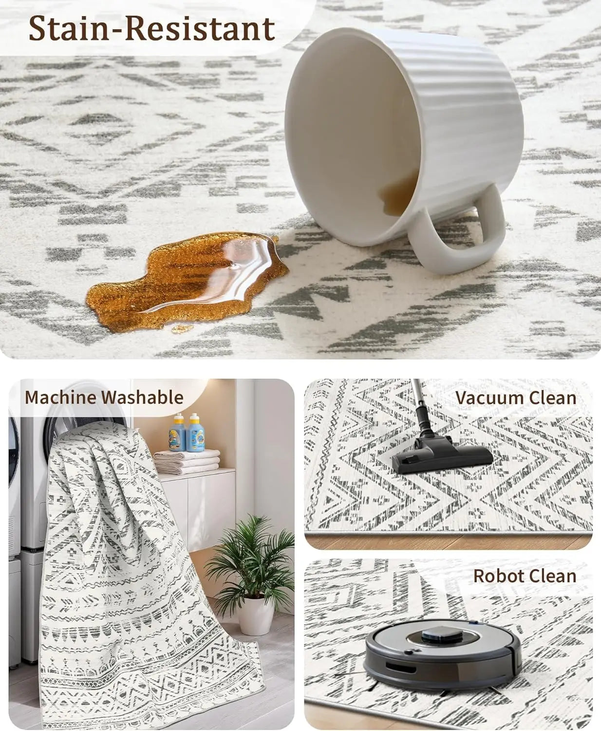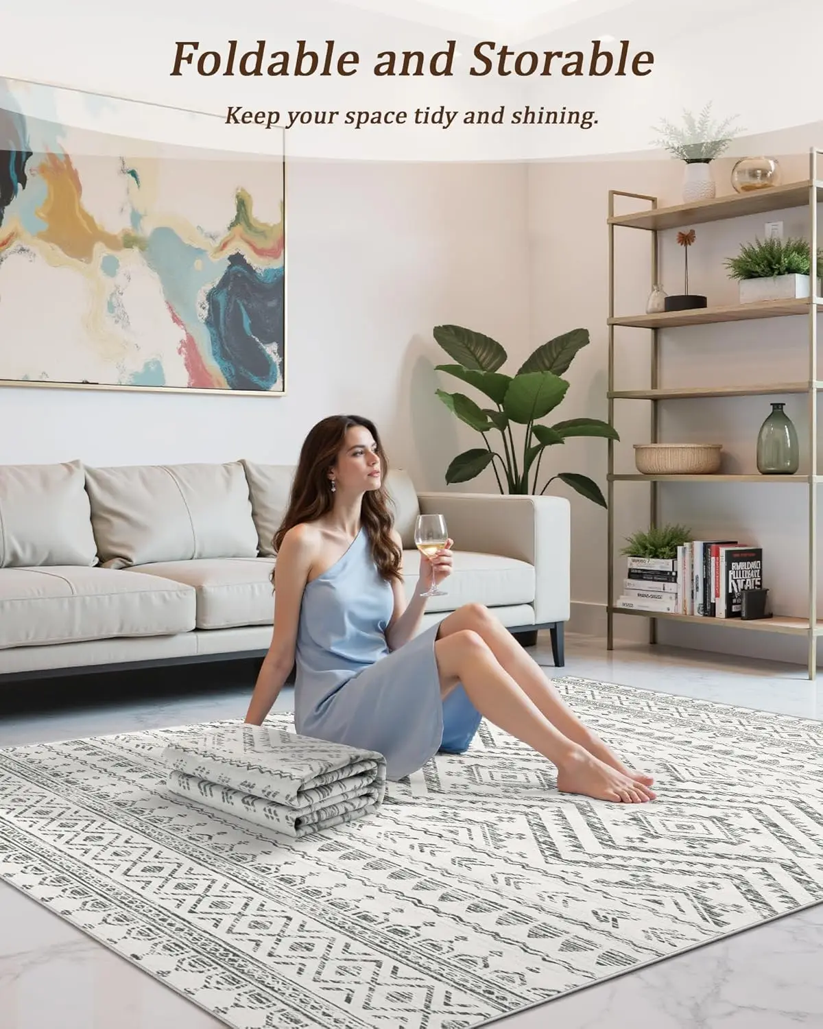 Enhance your home decor with our versatile and practical area rug, designed to meet the needs of modern living. This rug combines style and functionality for a comfortable and stylish space. Key Features: - **Size & Design**: Measures 8'x10', perfect for large areas like living rooms, dining rooms, or bedrooms. Features a classic Moroccan pattern in a neutral grey color that complements various interior styles. - **Material & Comfort**: Made from soft, low-pile materials that provide a cozy feel underfoot without being too thick. Ideal for high-traffic areas where comfort is key. - **Washability & Maintenance**: Fully washable design allows for easy cleaning; simply machine wash on gentle cycle to keep it looking fresh and new. Stain-resistant properties help maintain its appearance over time. - **Safety & Durability**: Equipped with a non-slip backing to prevent accidents on smooth floors, ensuring stability and safety for families with children or pets. Durable construction resists wear and tear from daily use. - **Versatility & Convenience**: Foldable design makes storage and transportation effortless; lightweight yet sturdy enough for indoor use in multiple rooms. Can be used as a decorative accent or functional floor covering. This rug is crafted to offer both aesthetic appeal and practical benefits, making it an excellent choice for enhancing your home environment without compromising on quality or ease of care.