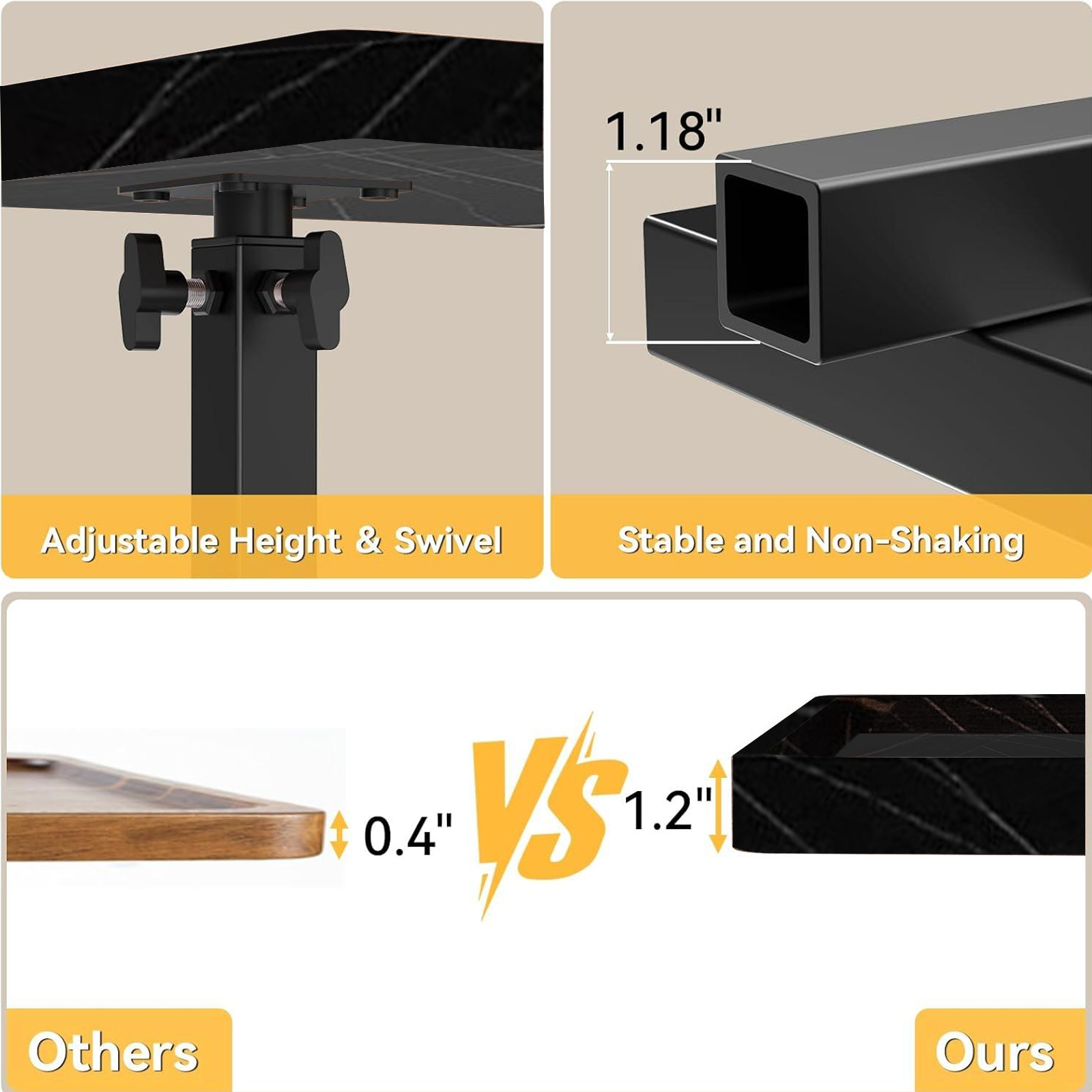 【 Adjustable Tray Table 】Our adjustable end table can be adjusted its height from 17.7in/45cm-31.5in/80CM, which is convenient to fit different height of sofas or bedside.