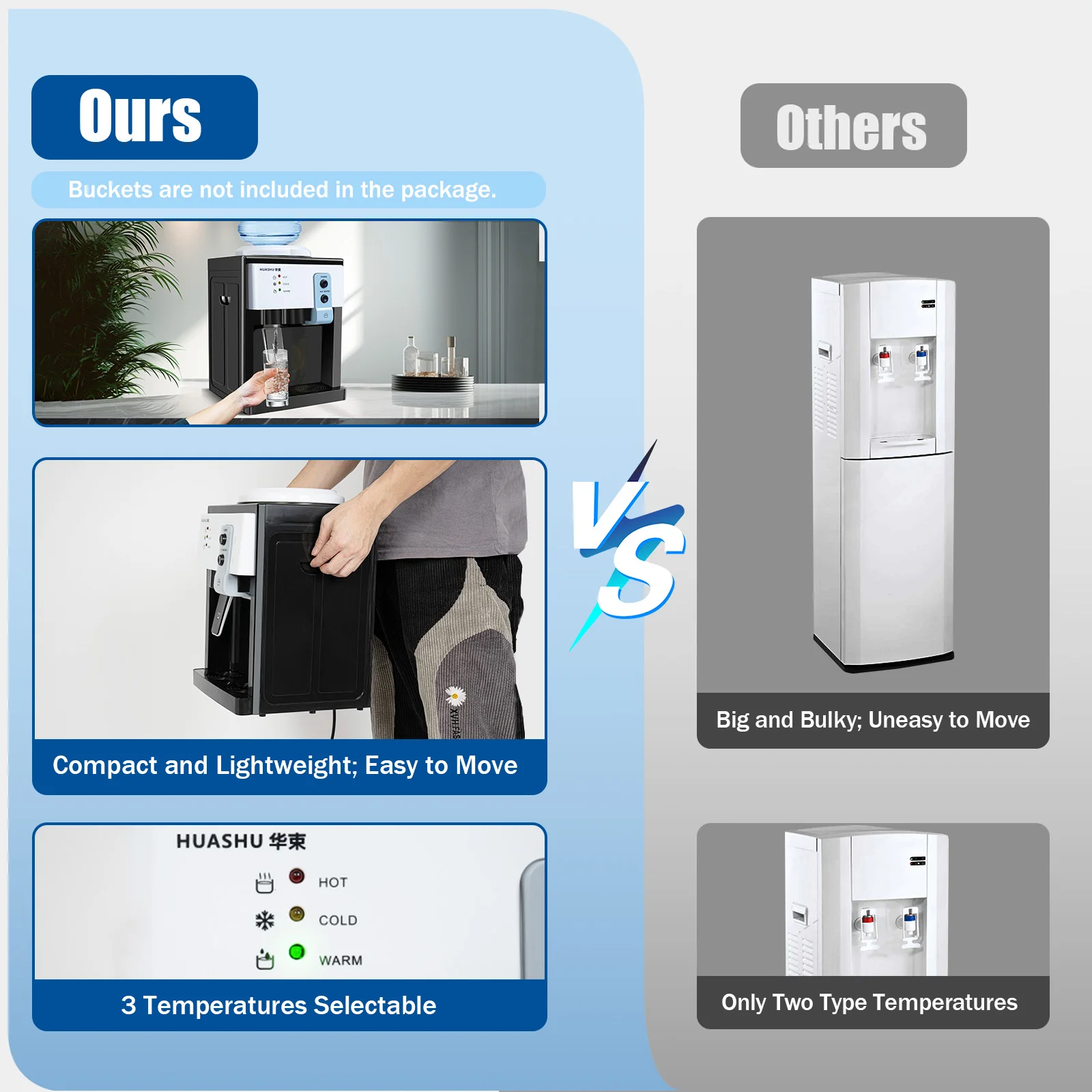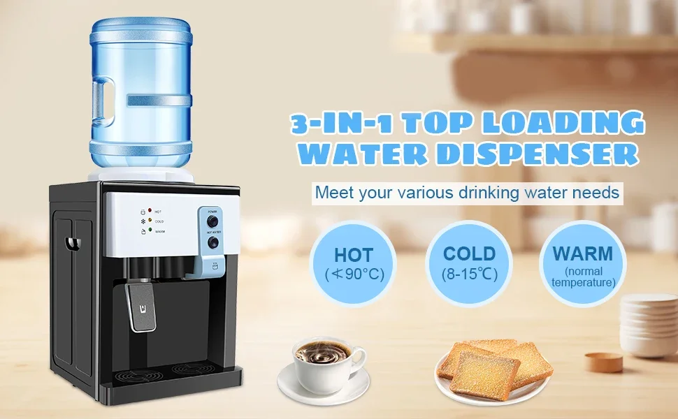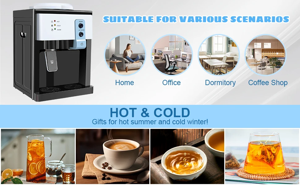 We cannot live without healthy water for daily life. This hot/cold water dispenser offers you a great option. It is small in size and occupies a small office and living space. One-button start allows for easy use and three indicator lights make it convenient to check the working state of this product. It will be an ideal choice for daily drinking.