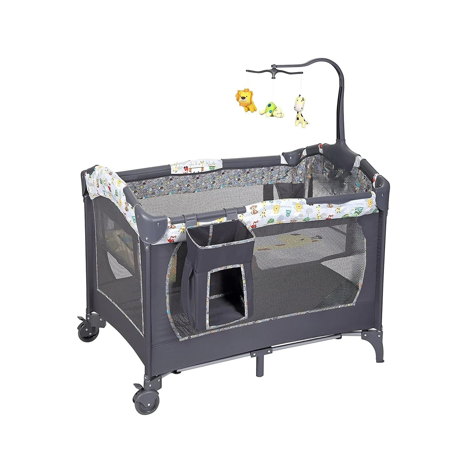 Enhances eye-hand coordination with 3 adorable toys to reach, bat and grasp