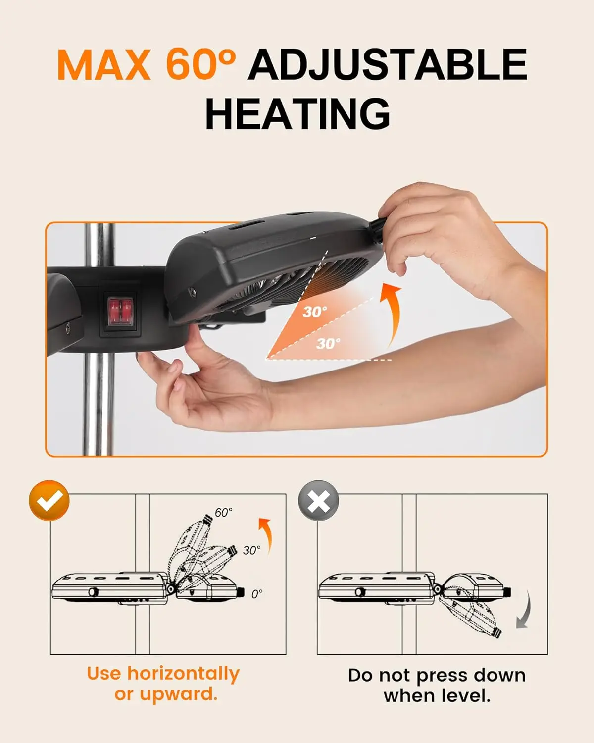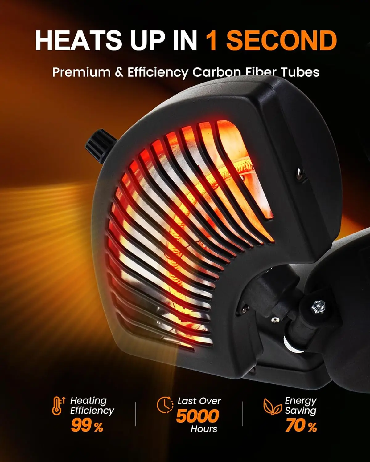 Experience immediate warmth and comfort in your outdoor space with this advanced electric patio heater. Designed for versatility and safety, it provides efficient heating solutions for various settings. Key Features: 1. Instant Infrared Heating Technology: Powered by infrared technology, this heater delivers quiet, direct warmth instantly upon activation. It operates without noise, waiting time, or harsh glare, creating a calm and comfortable atmosphere for any outdoor area. 2. Flexible Three-Level Heat Control: Choose from three adjustable power settings—500W, 1000W, and 1500W—to customize the heat output based on your needs. Perfect for cool evenings or early mornings, offering adaptable warmth for different weather conditions. 3. Precise Directional Heating: The heater features three independently operating heating elements that can be adjusted horizontally and tilted up to 60 degrees. This allows you to direct warmth exactly where it's needed most, ensuring optimal comfort. 4. Easy and Quick Setup: Specifically designed to fit patio umbrellas and standing posts with ease. The adjustable coupler accommodates pole diameters ranging from 0.98 to 2.36 inches (approximately 25mm to 60mm) and locks firmly in place for a stable installation. Mounting or repositioning takes just seconds without tools. 5. Enhanced Safety Features: Equipped with tip-over protection and overheat protection mechanisms to ensure safe daily use indoors or outdoors where permitted by local regulations (check local guidelines). It provides clean radiant heat without flames smoke emissions making it an eco-friendly alternative compared propane heaters while requiring minimal maintenance. 6 Energy Efficient Performance Utilizing high efficiency infrared technology consumes less electricity than traditional heaters reducing energy costs over time Ideal residential patios decks commercial spaces like beer gardens outdoor cafes restaurants etc 7 Sleek Modern Design With its compact form elegant black finish blends seamlessly into any setting adding both functionality sophistication Minimalist aesthetic enhances visual appeal without compromising performance 8 Versatile Applications Suitable year round use in various environments including homes businesses hospitality venues Provides reliable supplemental heating extending usability seasons ensuring comfort gatherings events daily relaxation 9 Durable Construction Built quality materials withstand outdoor elements long lasting durability Weather resistant components ensure consistent performance under different conditions backed warranty support customer satisfaction guarantee 10 Simple Operation User friendly controls allow easy adjustment settings intuitive interface makes accessible all ages No complex installation required plug play convenience ready immediate enjoyment