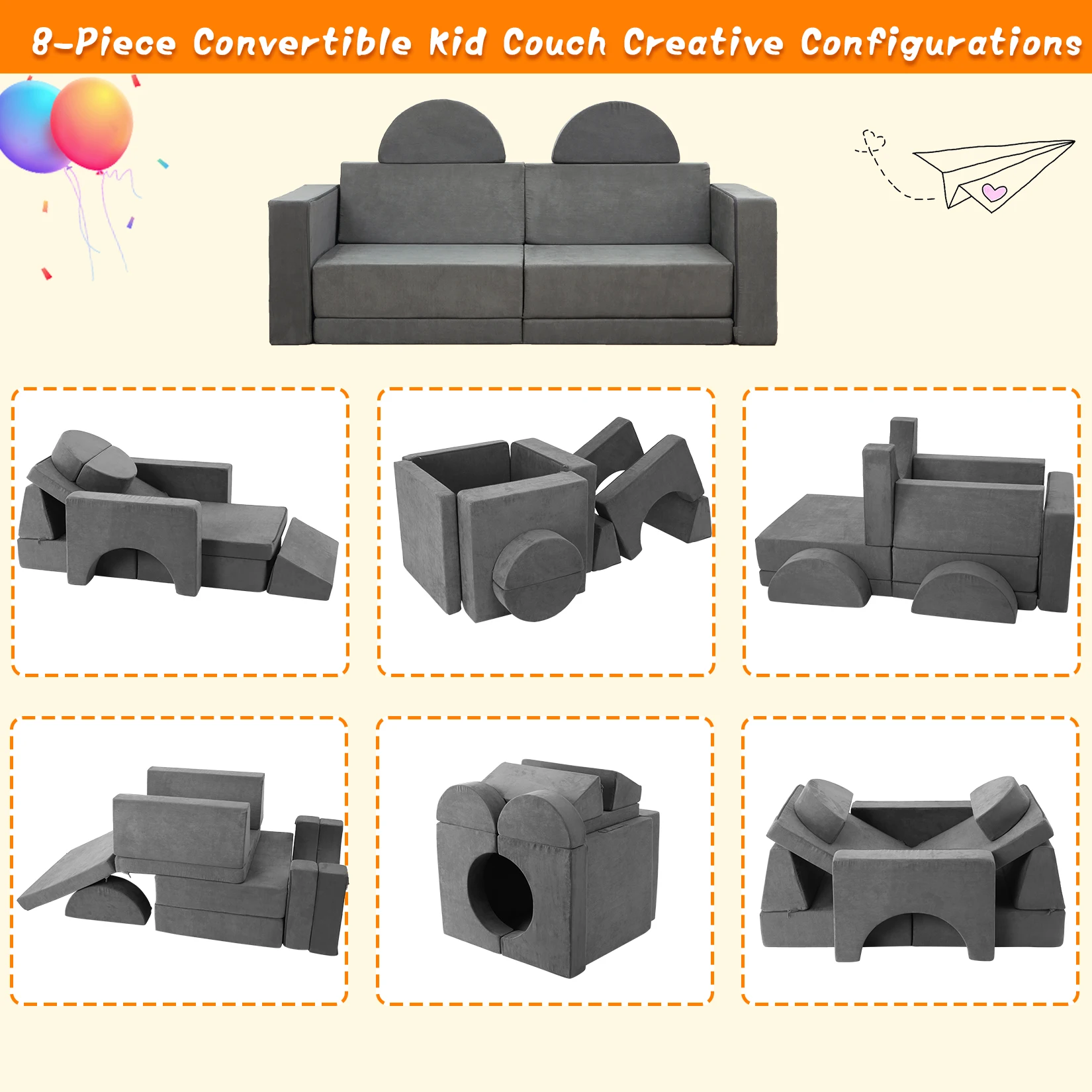 🎀🎀 8pcs Modular Kids Play Couch, Child Sectional Sofa, Bedroom and Playroom Furniture for Toddlers, Convertible Foam and Floor Cushion for Boys and Girls