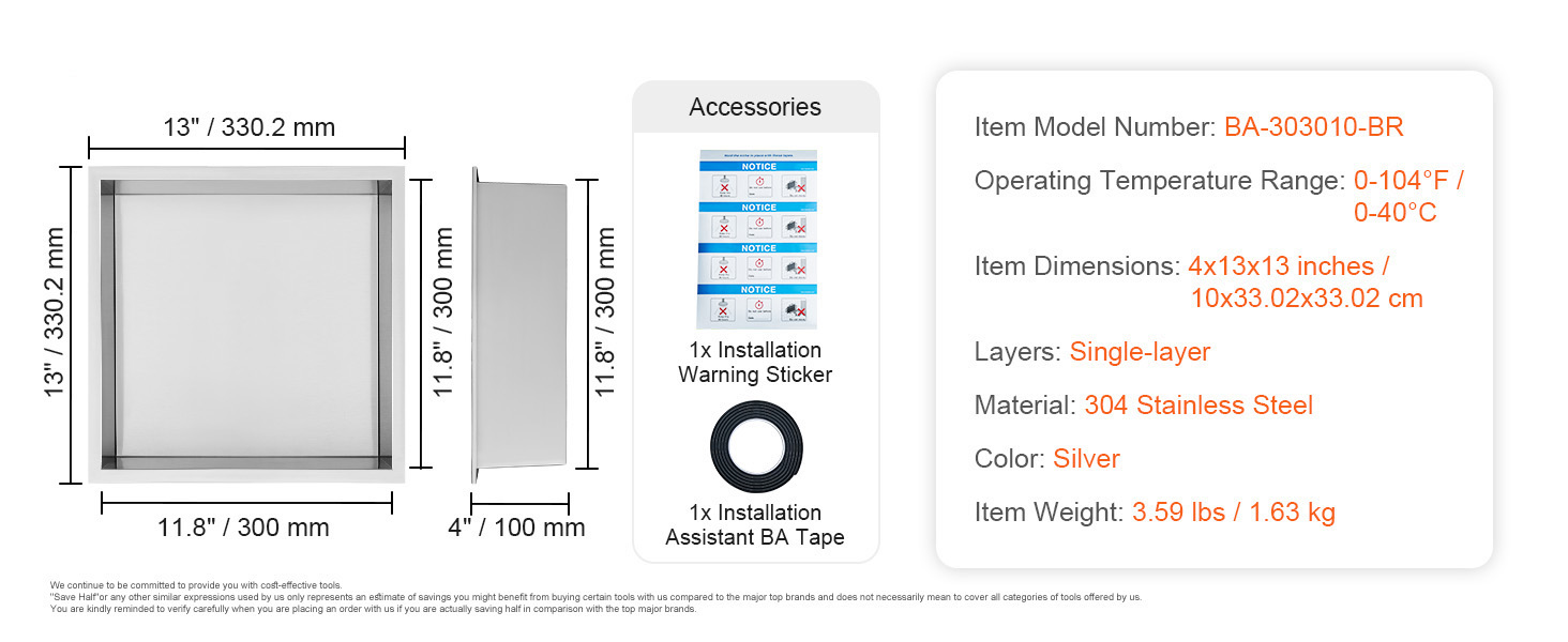 This shower niche is precision-made with seamless welding, providing 100% waterproofing to prevent leaks, reduce maintenance costs, and maintain a dry and hygienic indoor environment by preventing issues like mold damage.