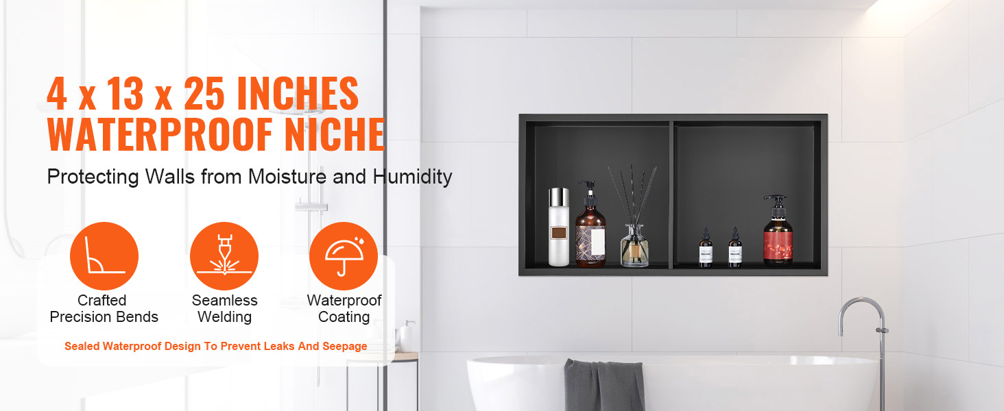 Seamless Waterproof Design:Crafted with precision welding, this shower niche guarantees 100% waterproof performance. It prevents leaks and reduces maintenance, ensuring a dry, hygienic space by protecting against mold and water damage.