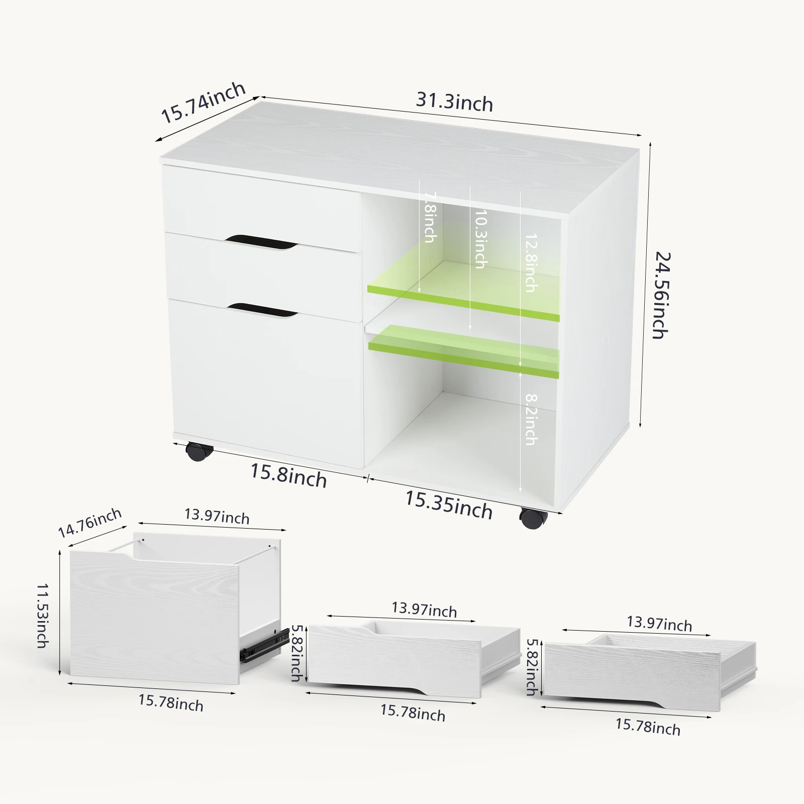 Versatile Storage Solution: This office cabinet combines open shelving and 3 drawers to neatly organize paperwork, supplies, or household items. The top two drawers are sized for smaller essentials, while the spacious bottom drawer accommodates larger folders. The durable top surface provides extra space for printers or scanners, making it ideal for home offices, living rooms, or studios.